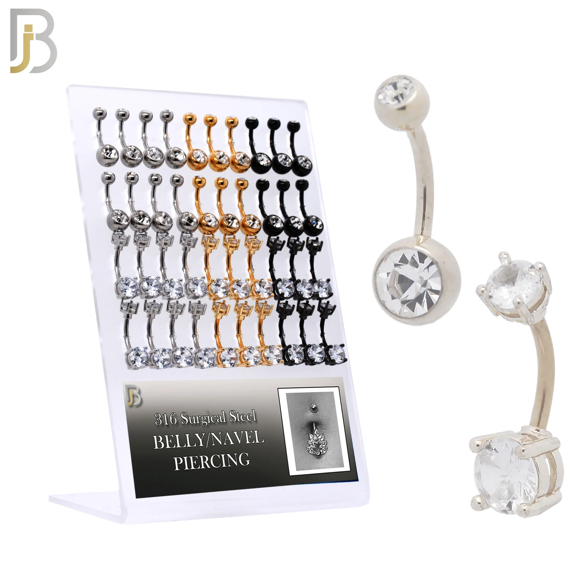 316L Surgical Steel / Gold Plated / Black Plated Screw Bezel / Prong Setting Zircon Ball Banana Belly Ring Pack of 40