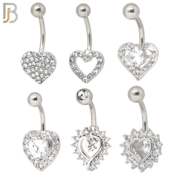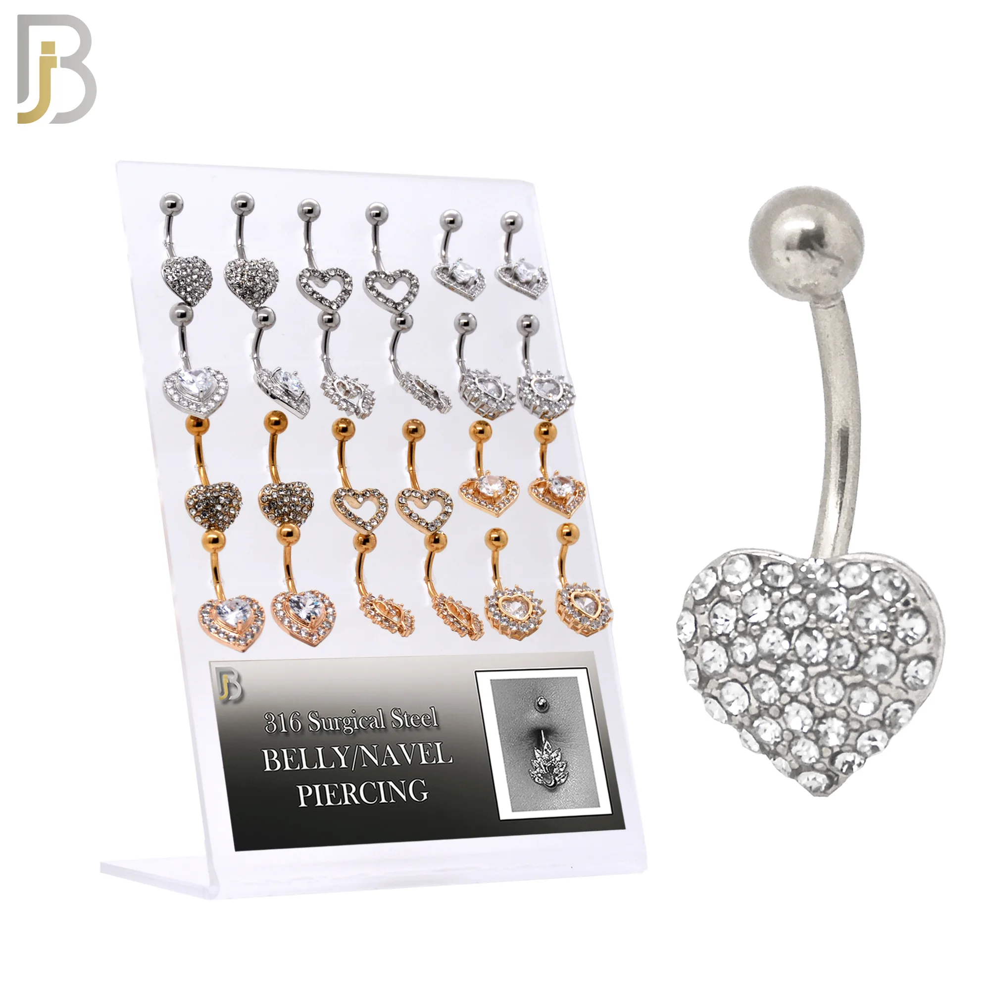 316L Surgical Steel Different Heart Design Banana Belly Ring Pack of 24