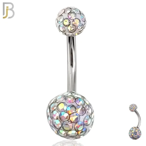 316L Surgical Steel Screw Coated Multi Gem Ball Banana Belly Ring Pack of 40