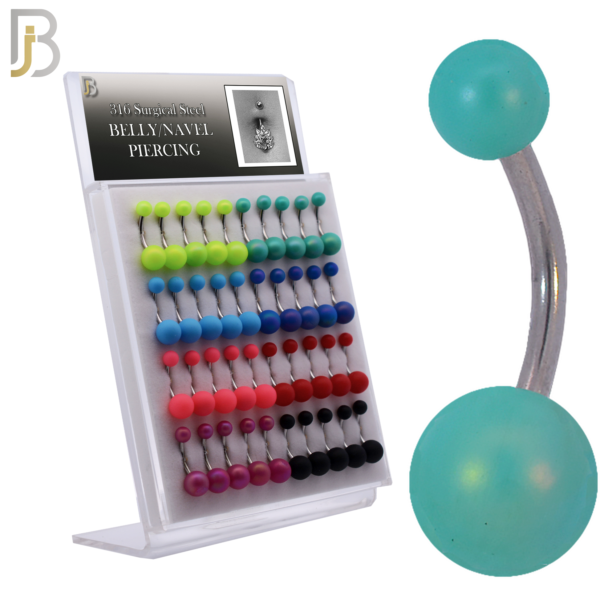 316L Surgical Steel Different Color Balls Designs Banana Belly Ring – Pack of 40