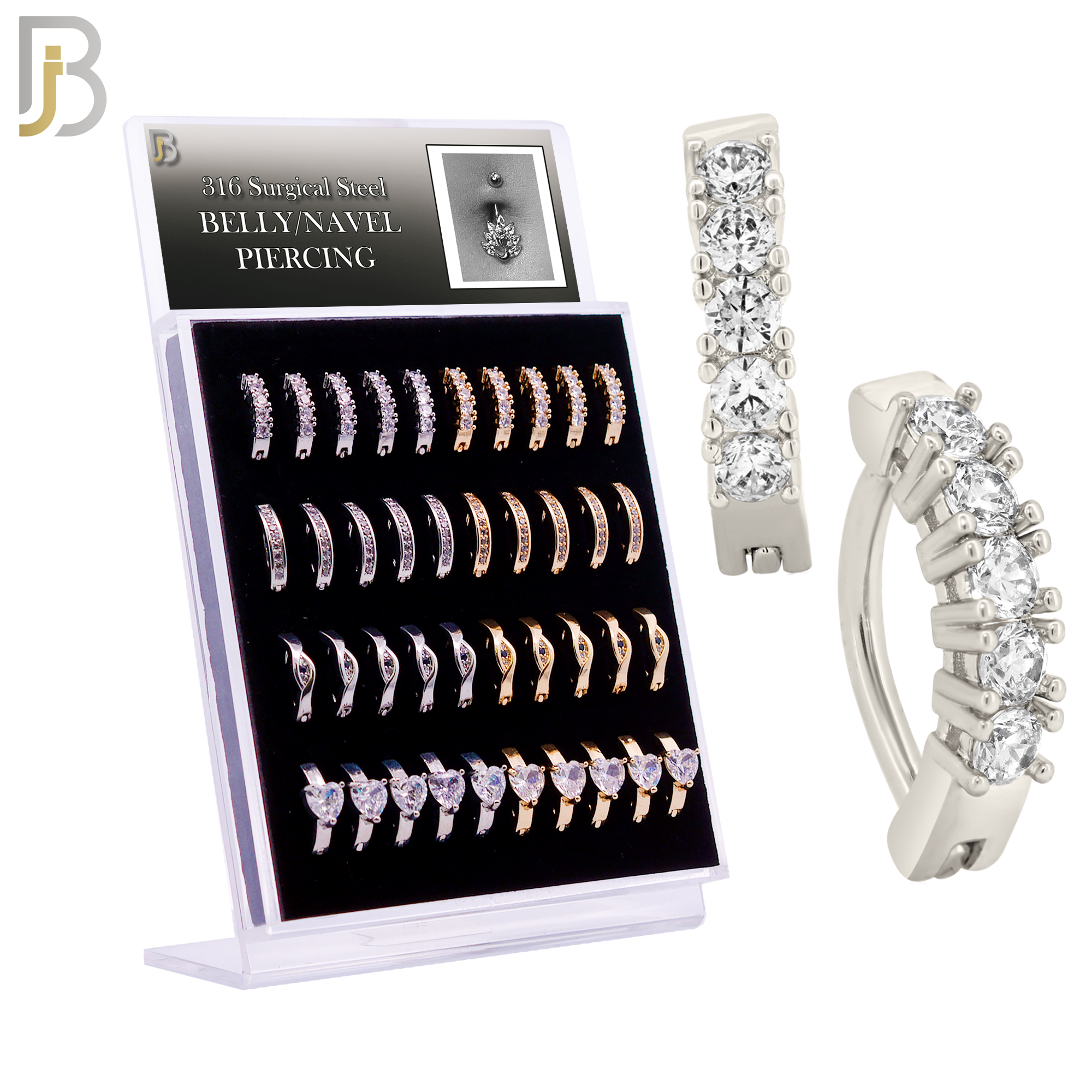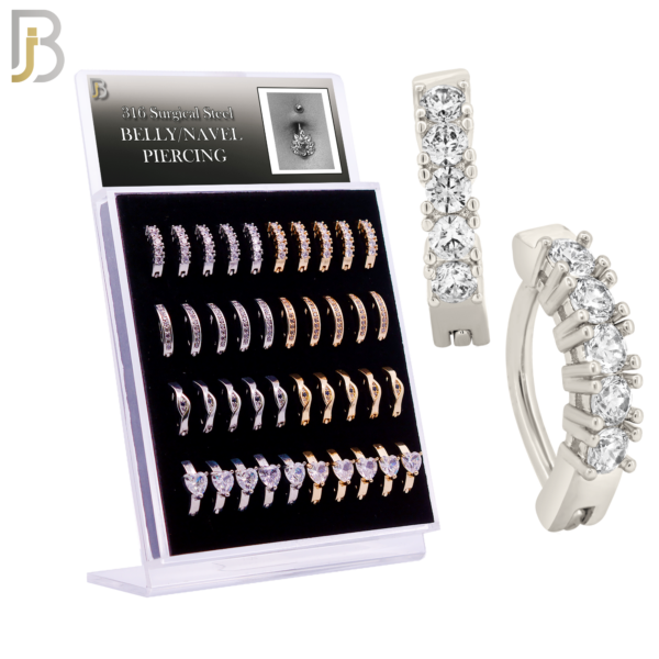 316 Surgical Steel Four Designs Clicker Belly Rings in Silver and Gold Colors – Pack of 40 pcs