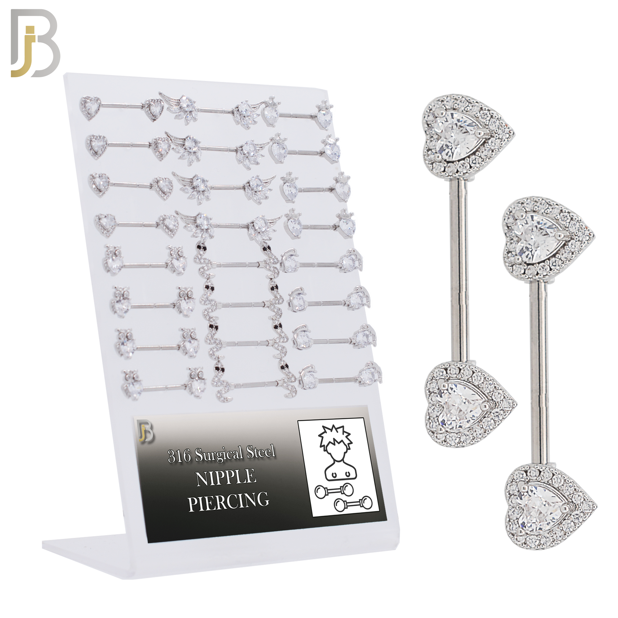 316 Surgical Steel Nipple Rings with Mixed Designs Pack of 24