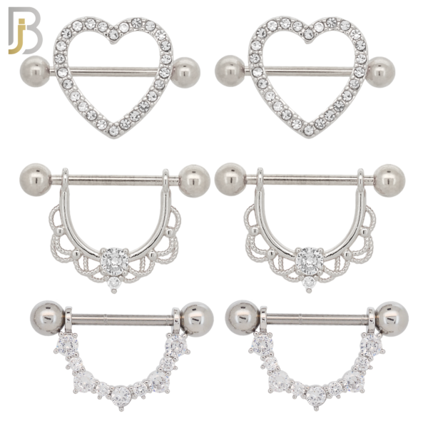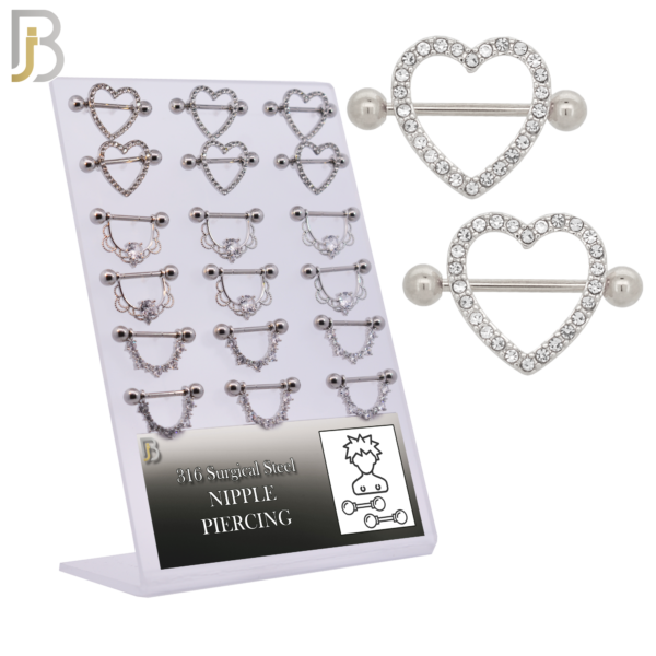 316 Surgical Steel Nipple Rings with Mixed Designs Pack of 18