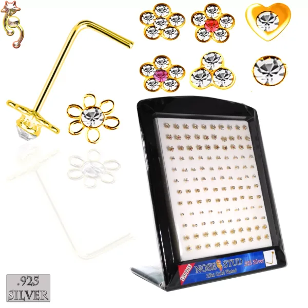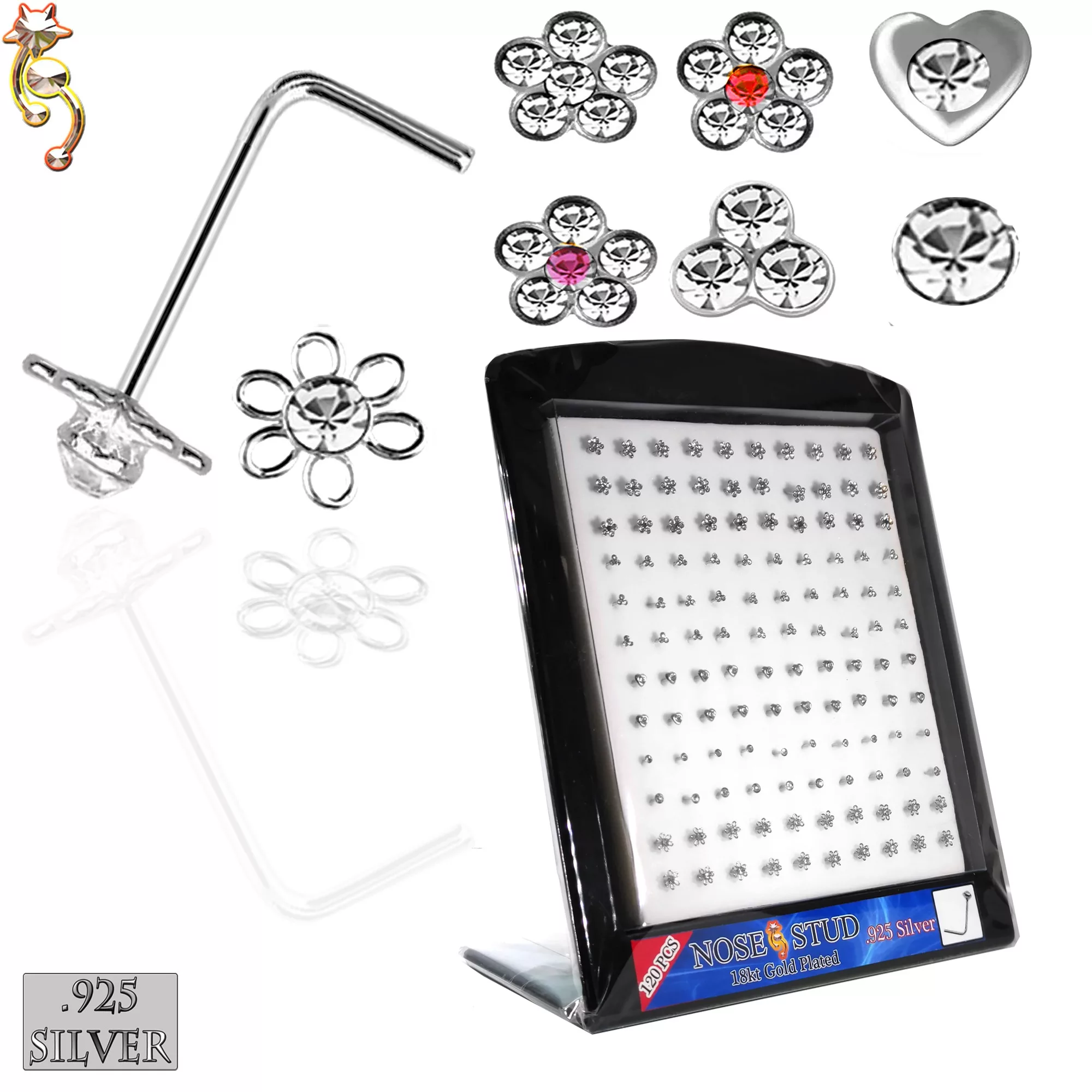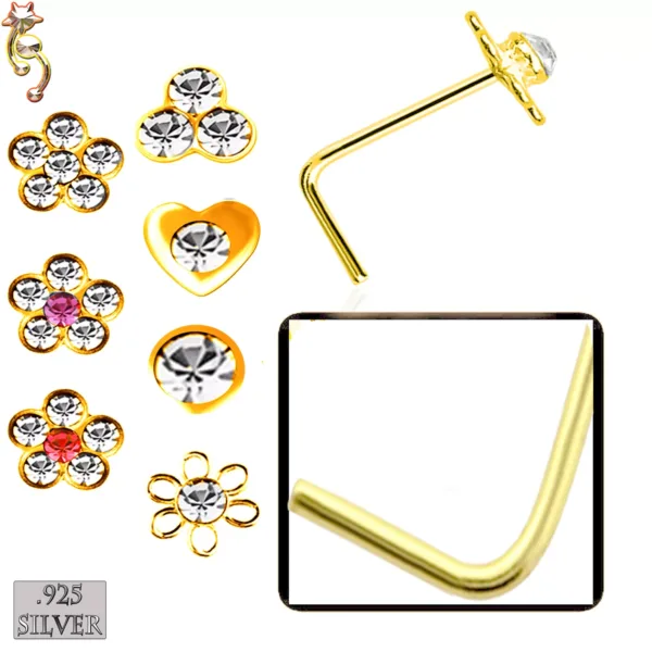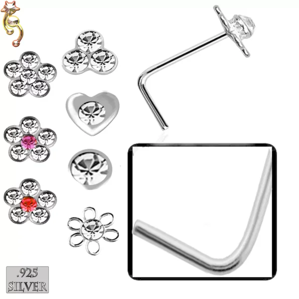 .925 Sterling Silver Nose Stud “L Shape” Assorted Shape