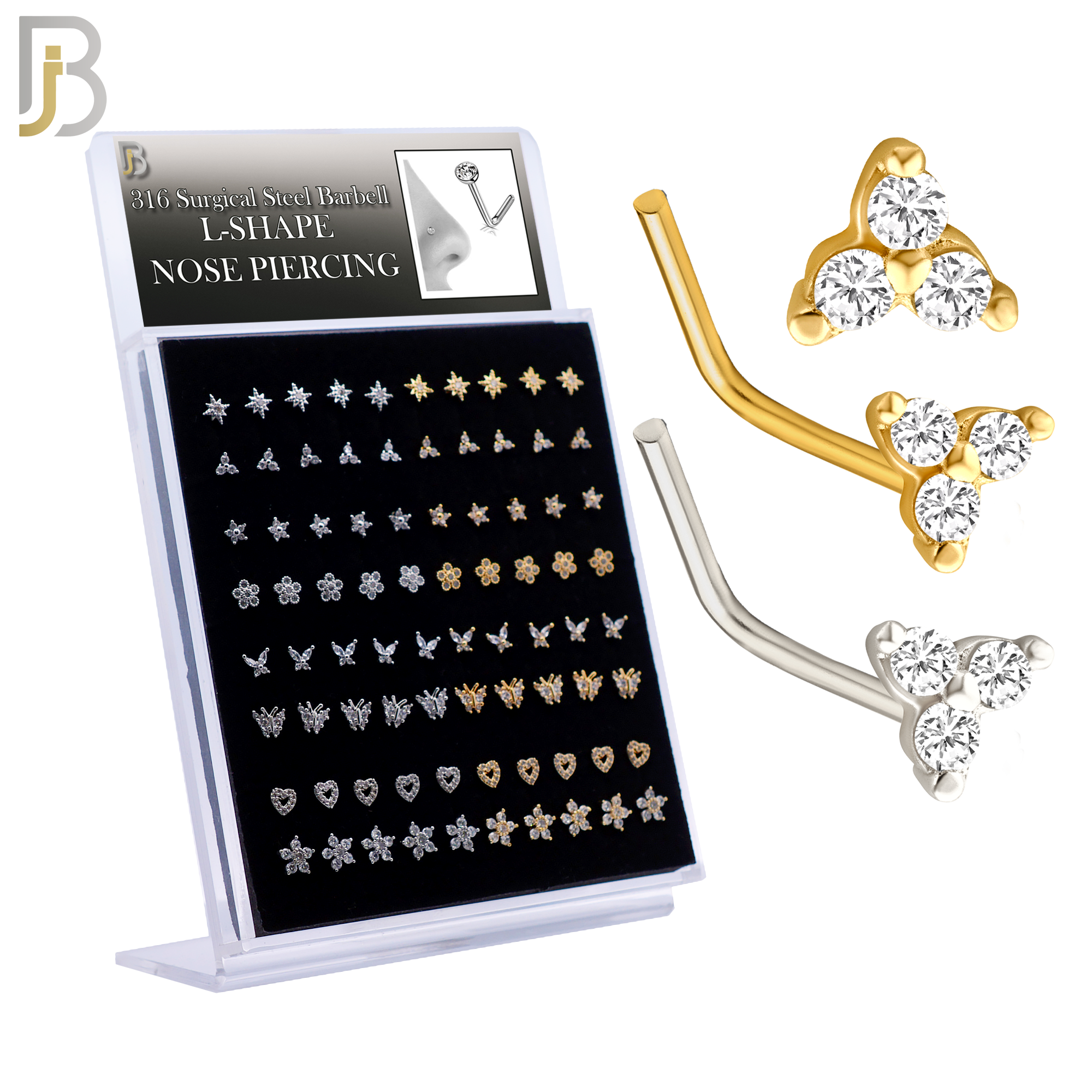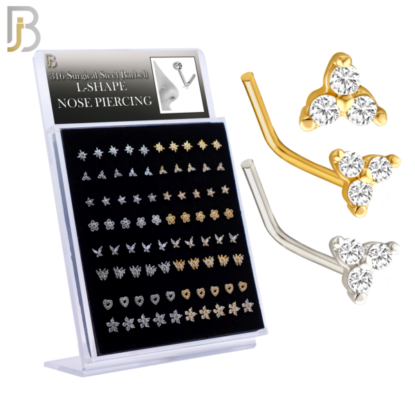 316 Surgical Steel L-Shape Nose Ring with Eight Different Designs – Pack of 80 pcs