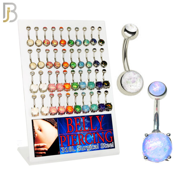 316L Surgical Steel Screw Bezel Setting and Prong Setting Opal Banana Belly Ring Pack of 40