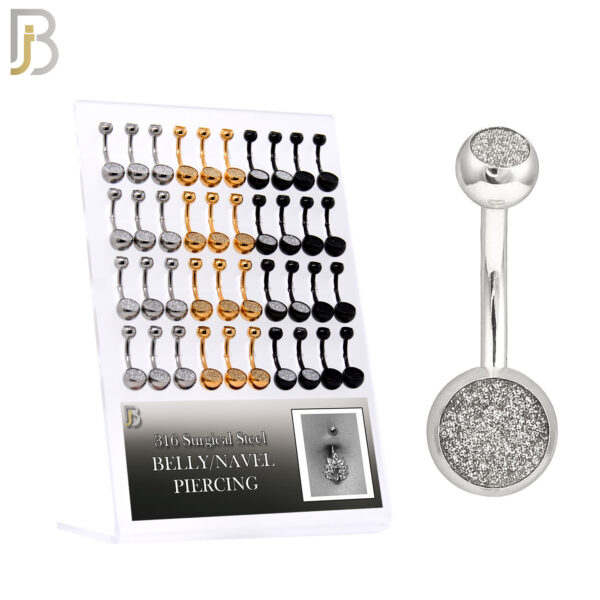 316L Surgical Steel Screw Bezel Setting Sandpaper Ball Banana Belly Ring Pack of 40