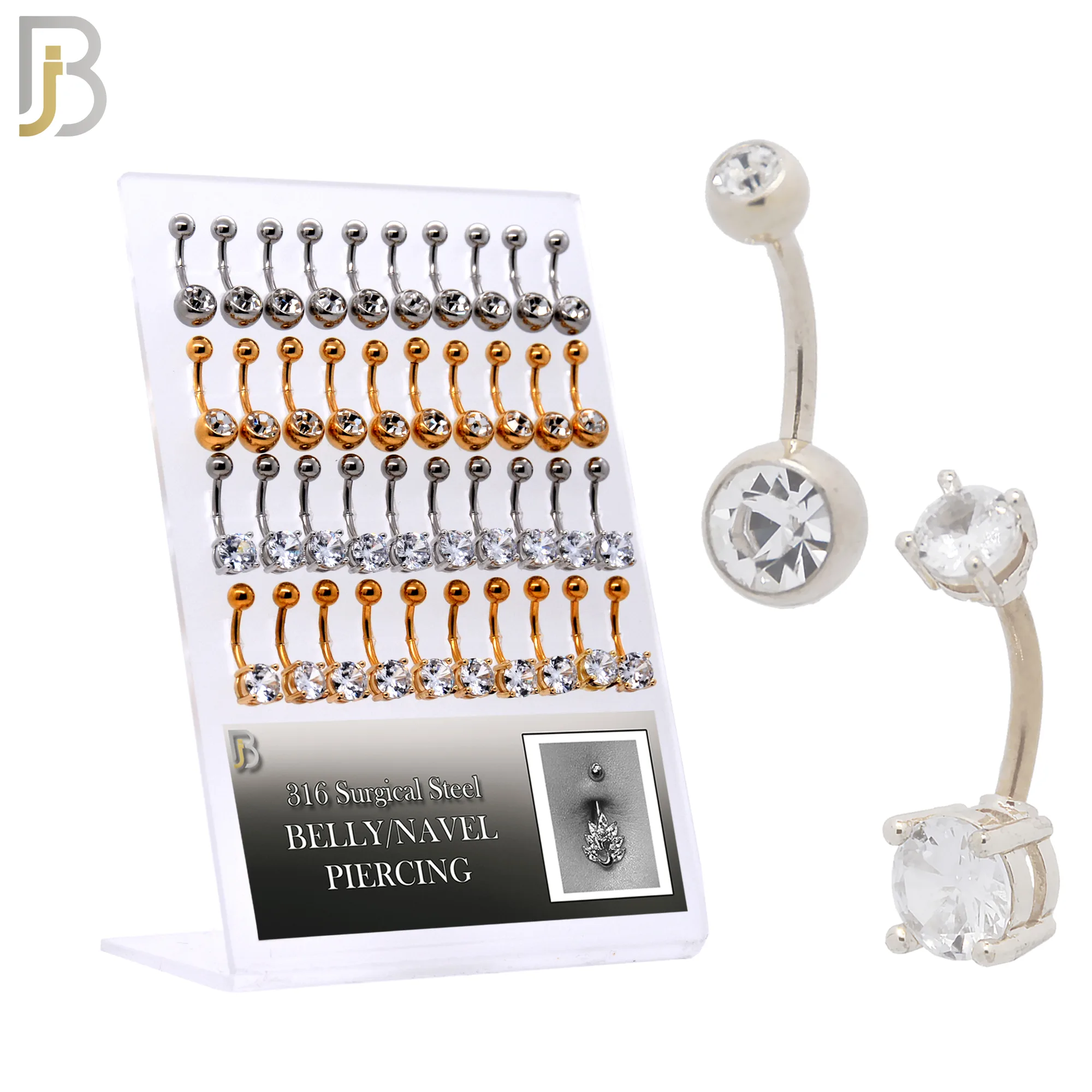316L Surgical Steel / Gold Plated Screw Bezel / Prong Setting Zircon Ball Banana Belly Ring Pack of 40