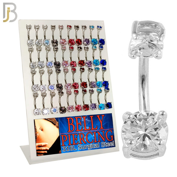 PK-NB04 – 316L Surgical Steel Screw Prong Setting Round Banana Belly Ring Pack of 40