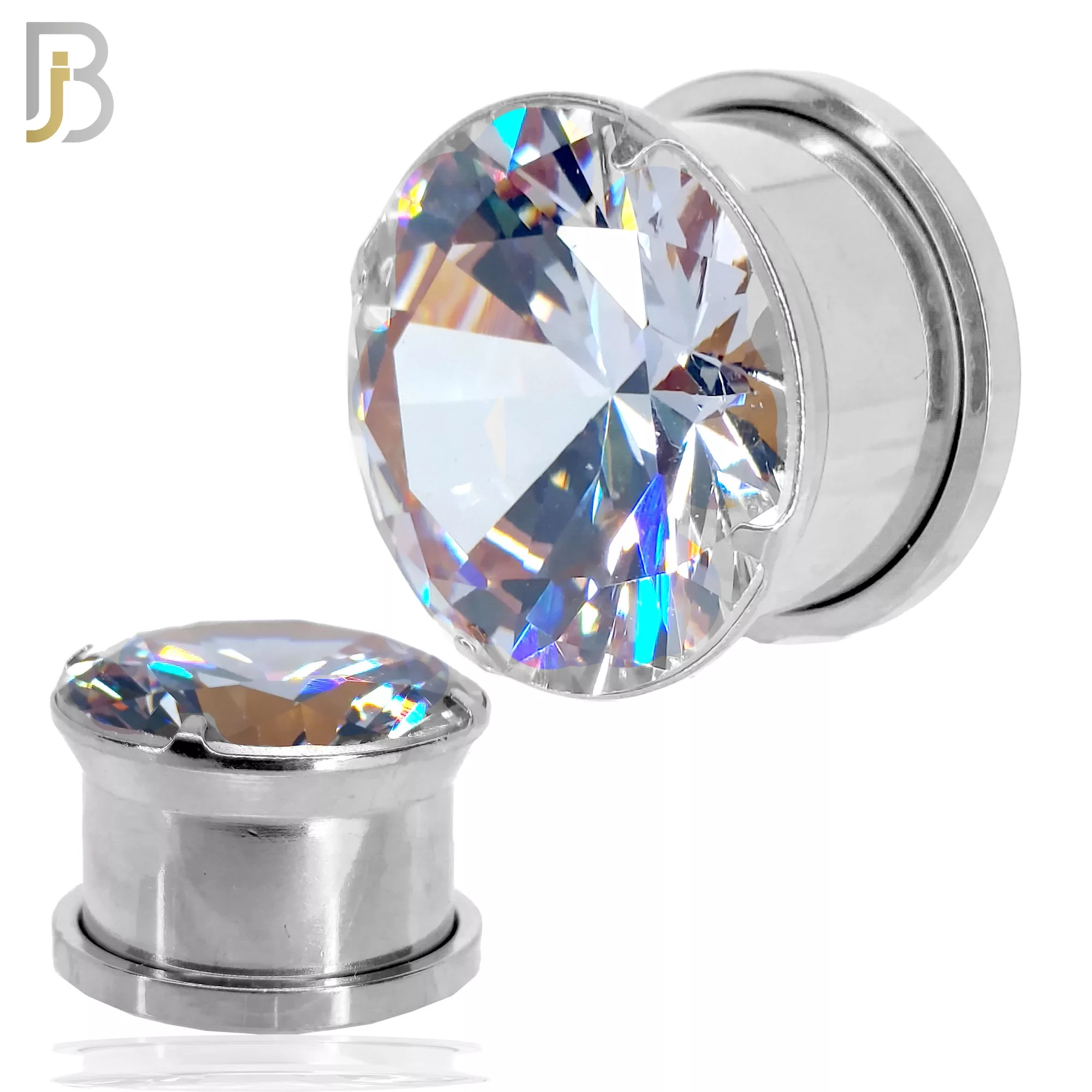 Surgical Steel Clear Round Prong Setting Zircon Screw On Plugs