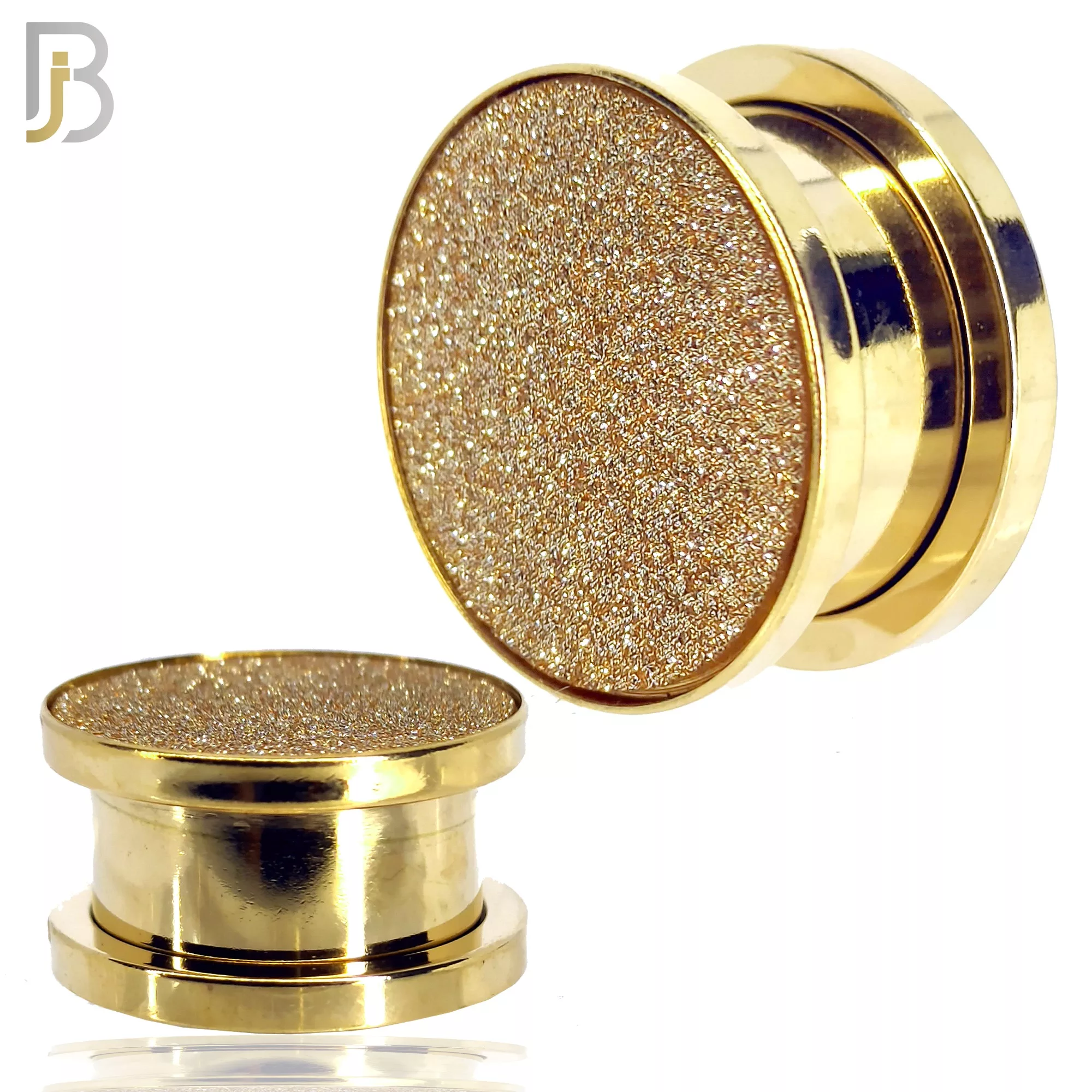 Gold Plated Surgical Steel Solid Sandpaper Top Design Screw On Plugs