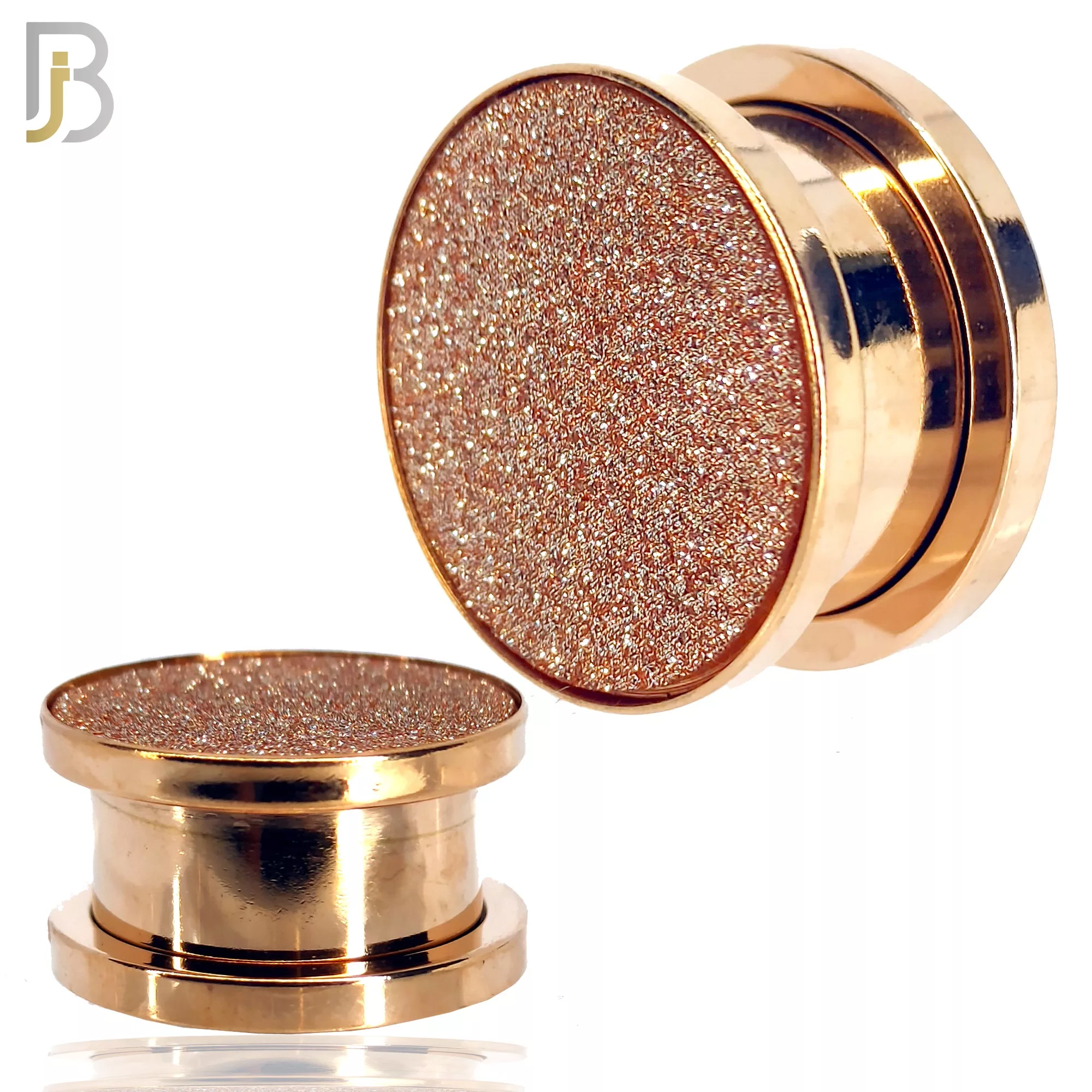 Rose Gold Plated Surgical Steel Solid Sandpaper Top Design Screw On Plugs