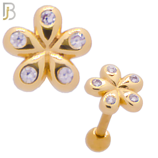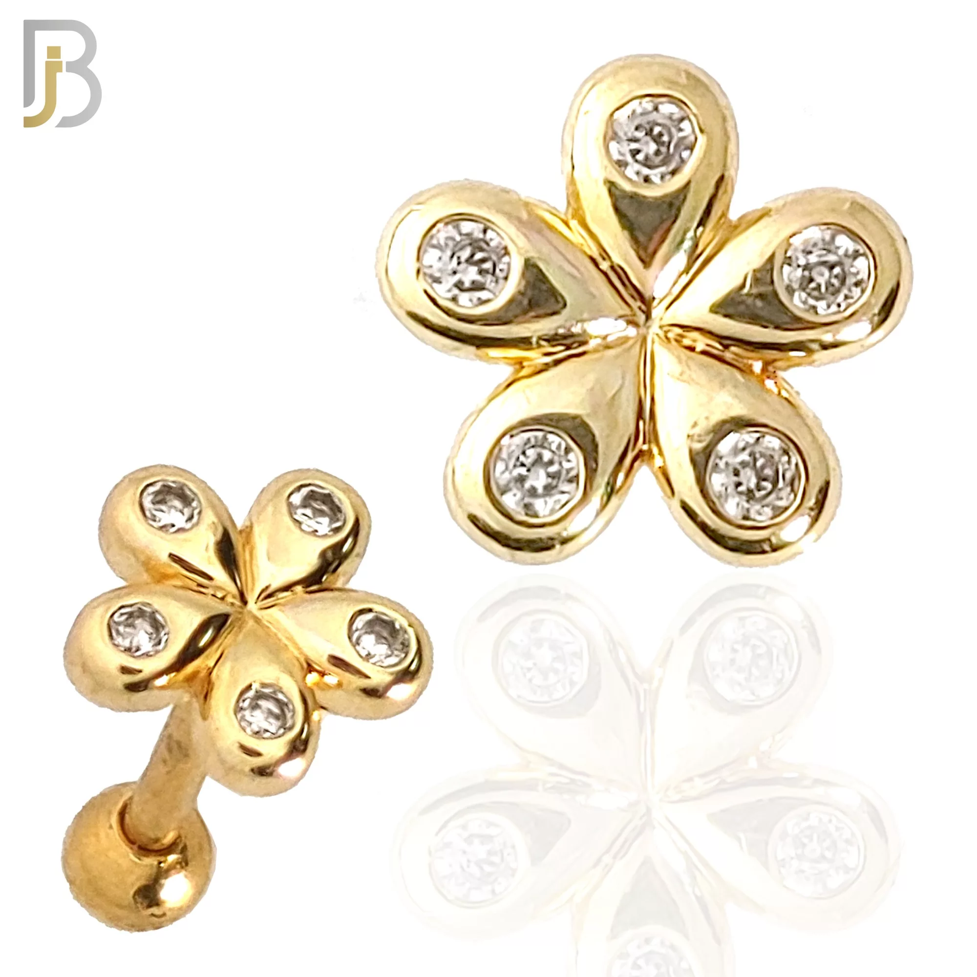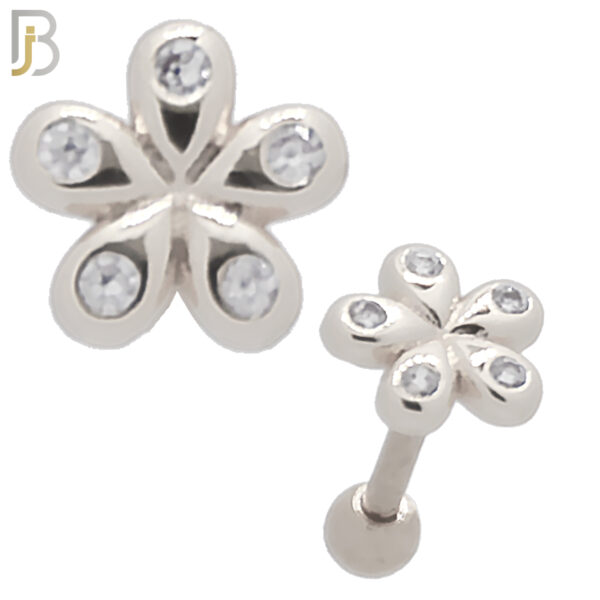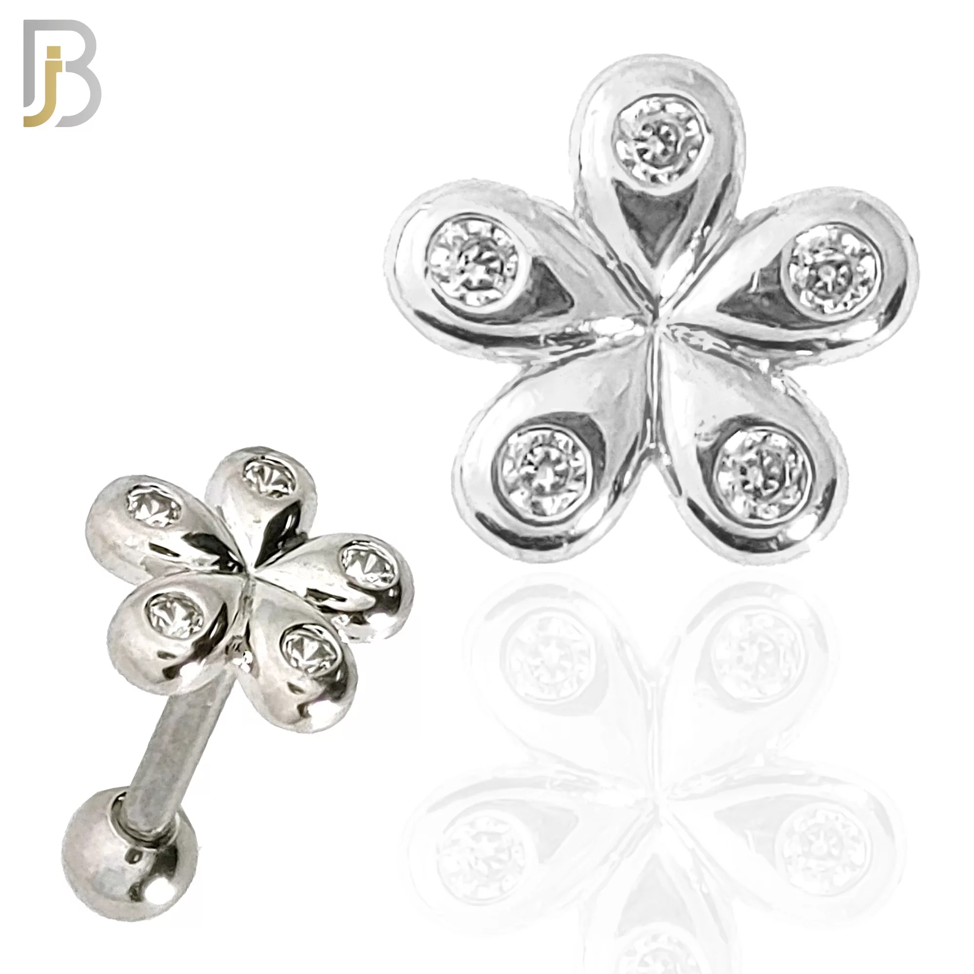 TB04 – 316L Surgical Steel Flower Design with Zircon Tragus Barbell Cartilage Piercing Screw Ball (PACK OF 6)