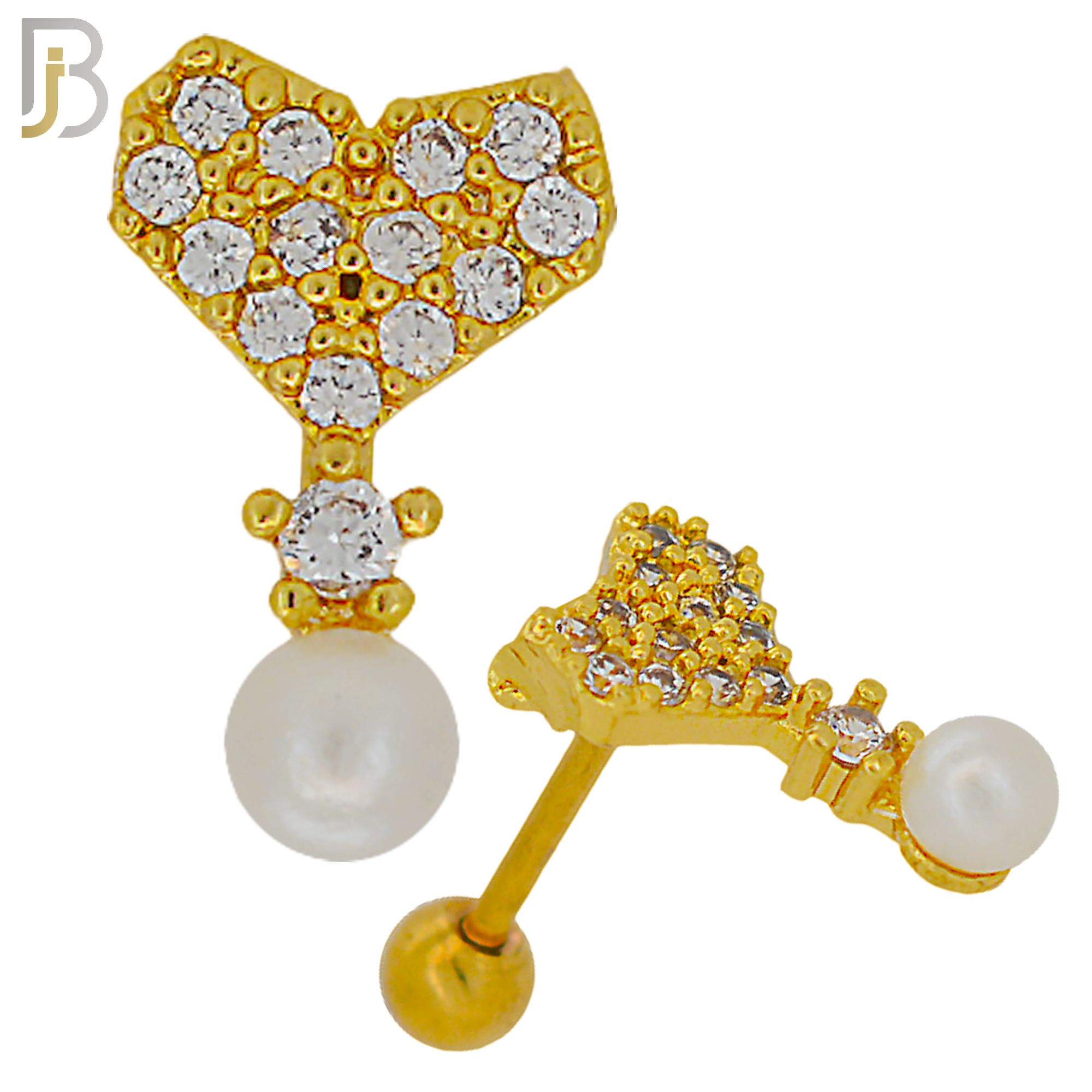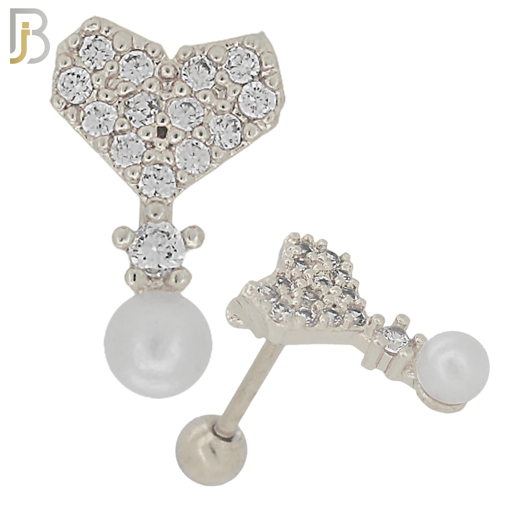 316L Stainless Steel Heart with Multi CZ and Synthetic Pearl Tragus/Cartilage Barbell