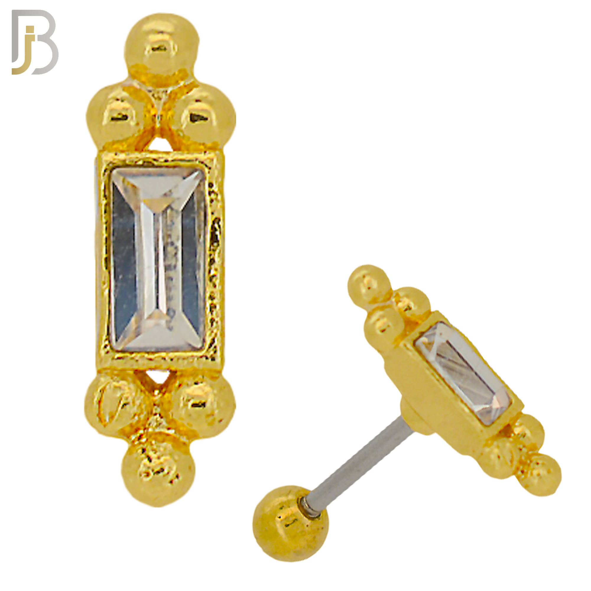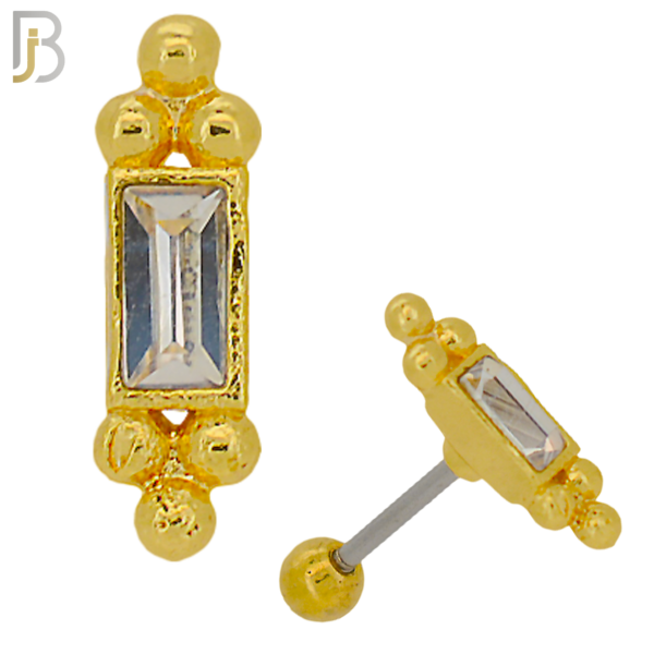 316L Stainless Steel Hammer with Baguette CZ and Beads Cluster Tragus/Cartilage Barbell