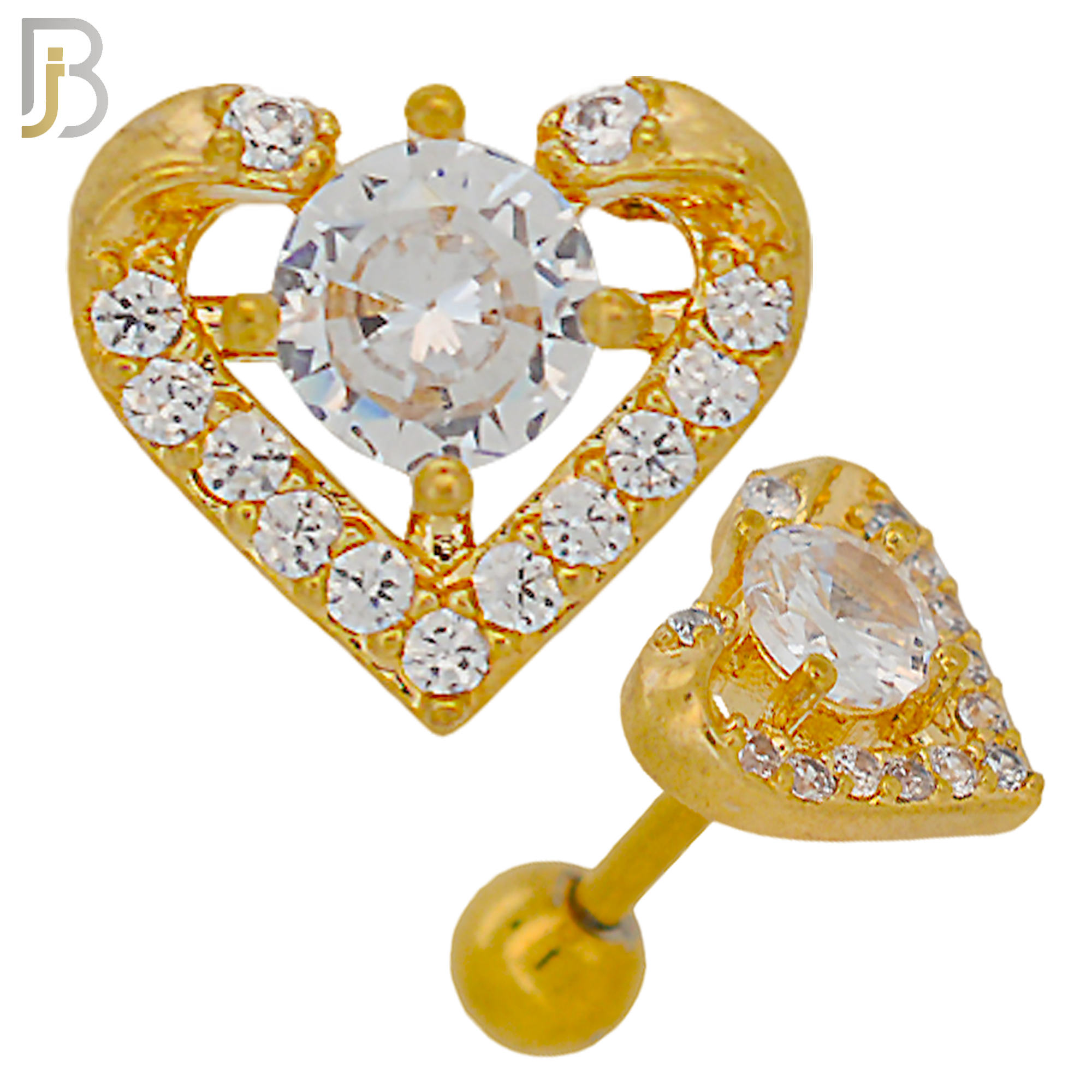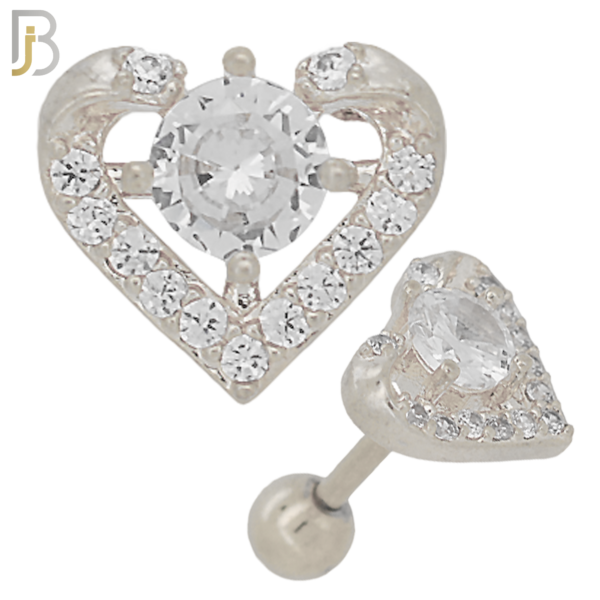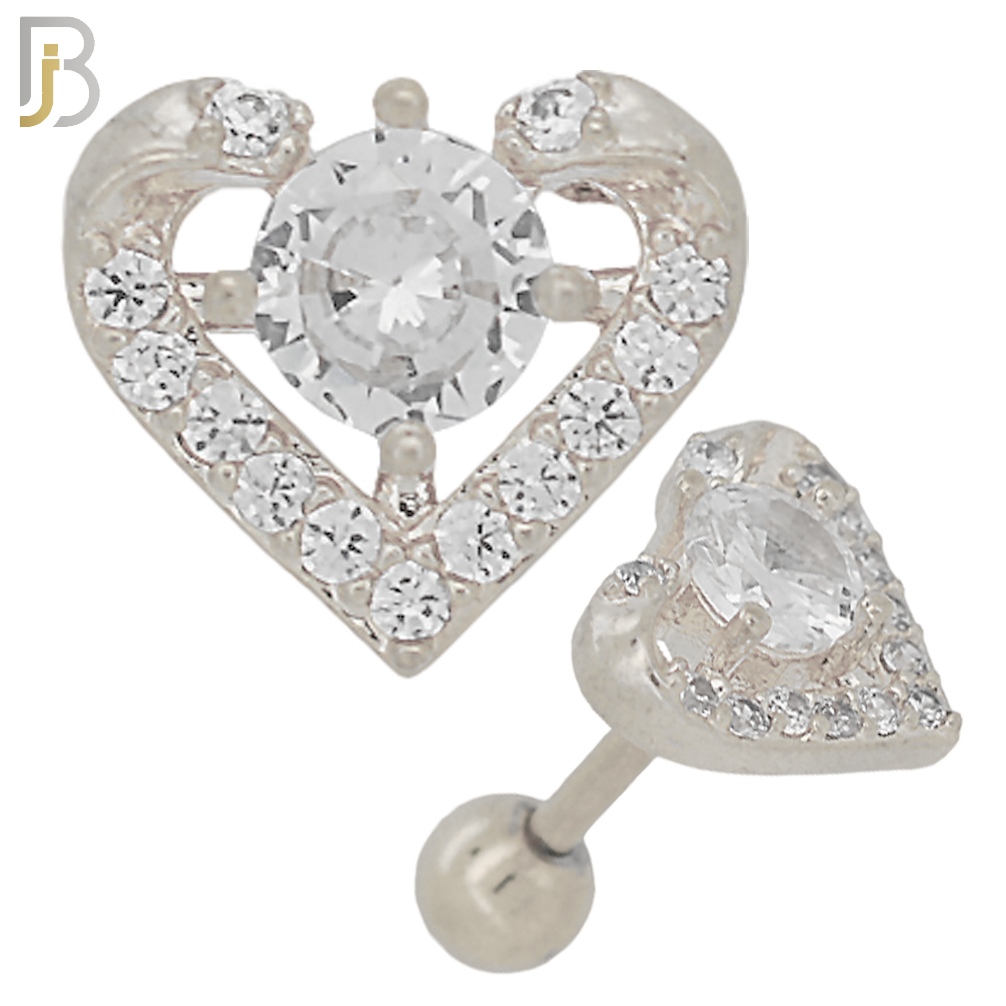 316L Stainless Steel Heart with Round CZ Center Tragus/Cartilage Barbell