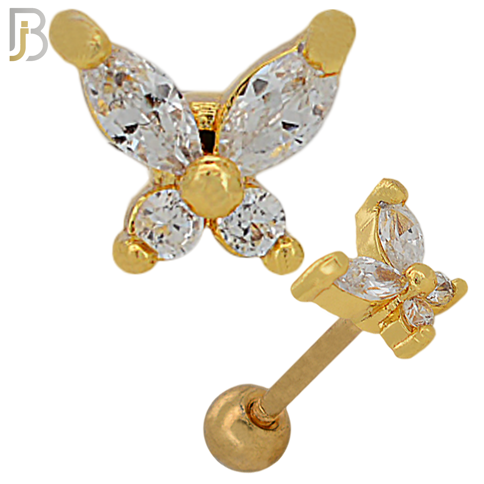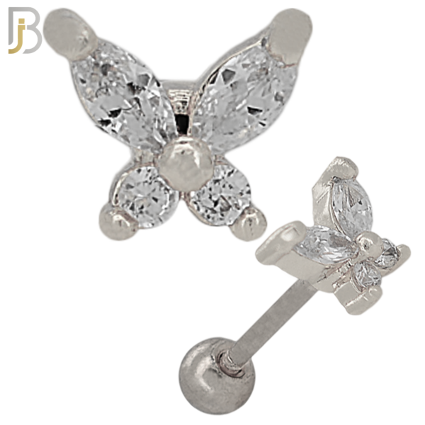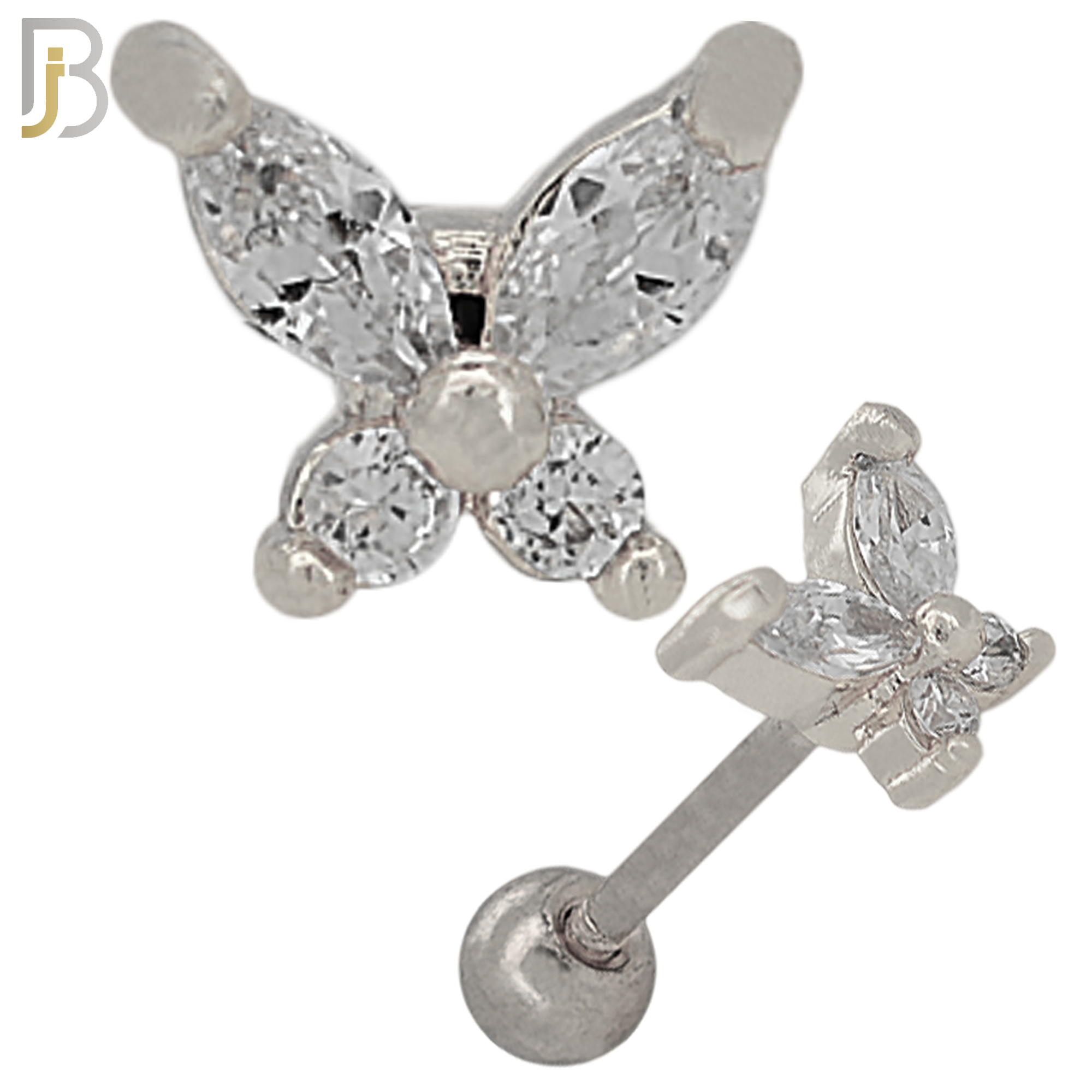316L Stainless Steel Butterfly with CZ Tragus/Cartilage Barbell with Screw Ball Backing