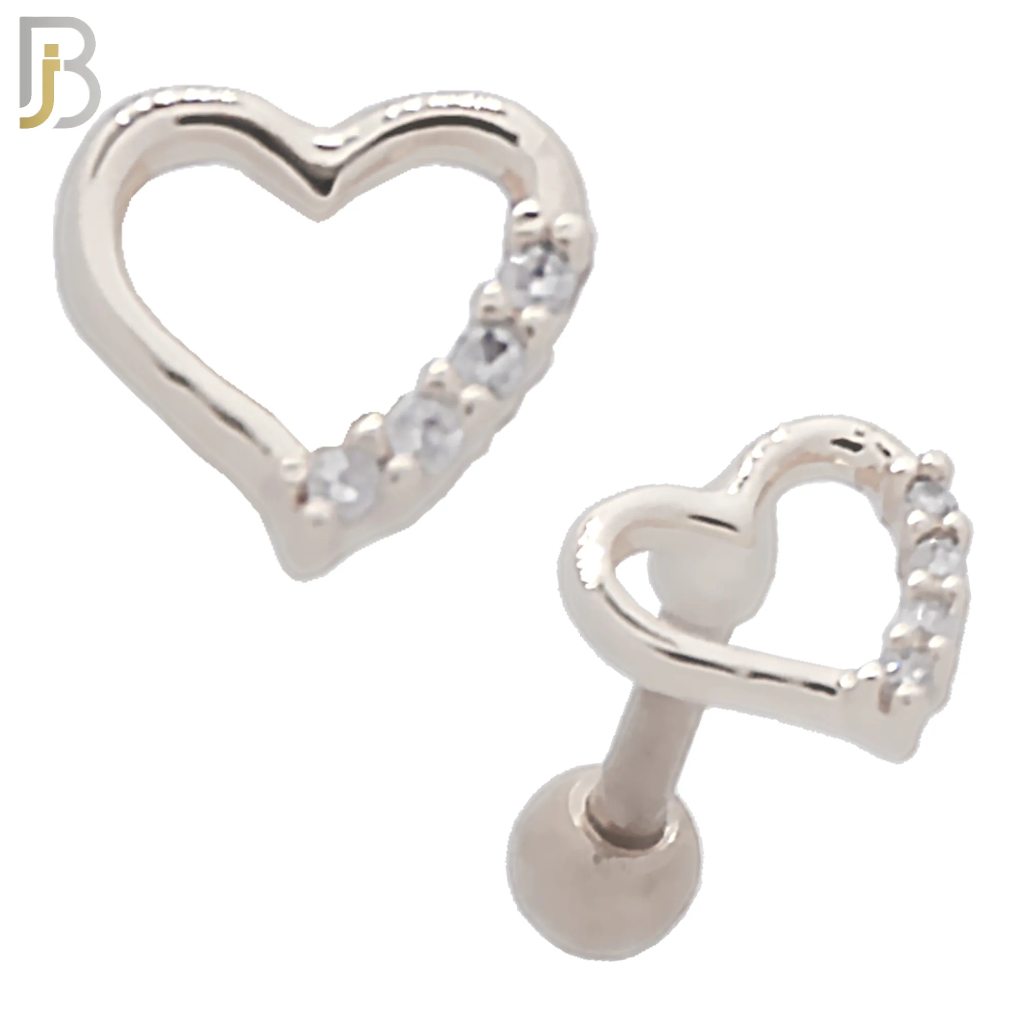 316L Surgical Steel Hollow Heart Design with Zircon Tragus Barbell Cartilage Piercing Screw Ball