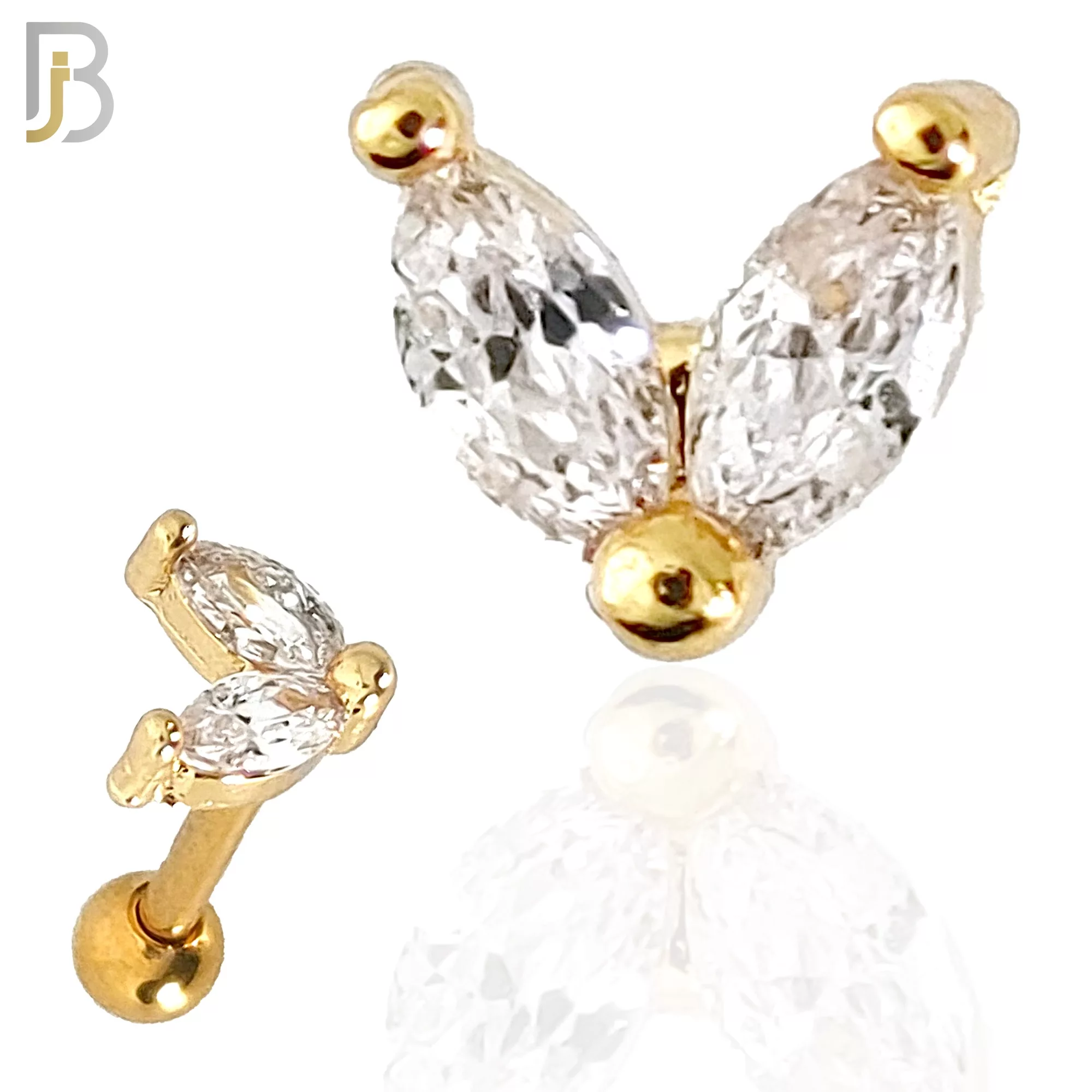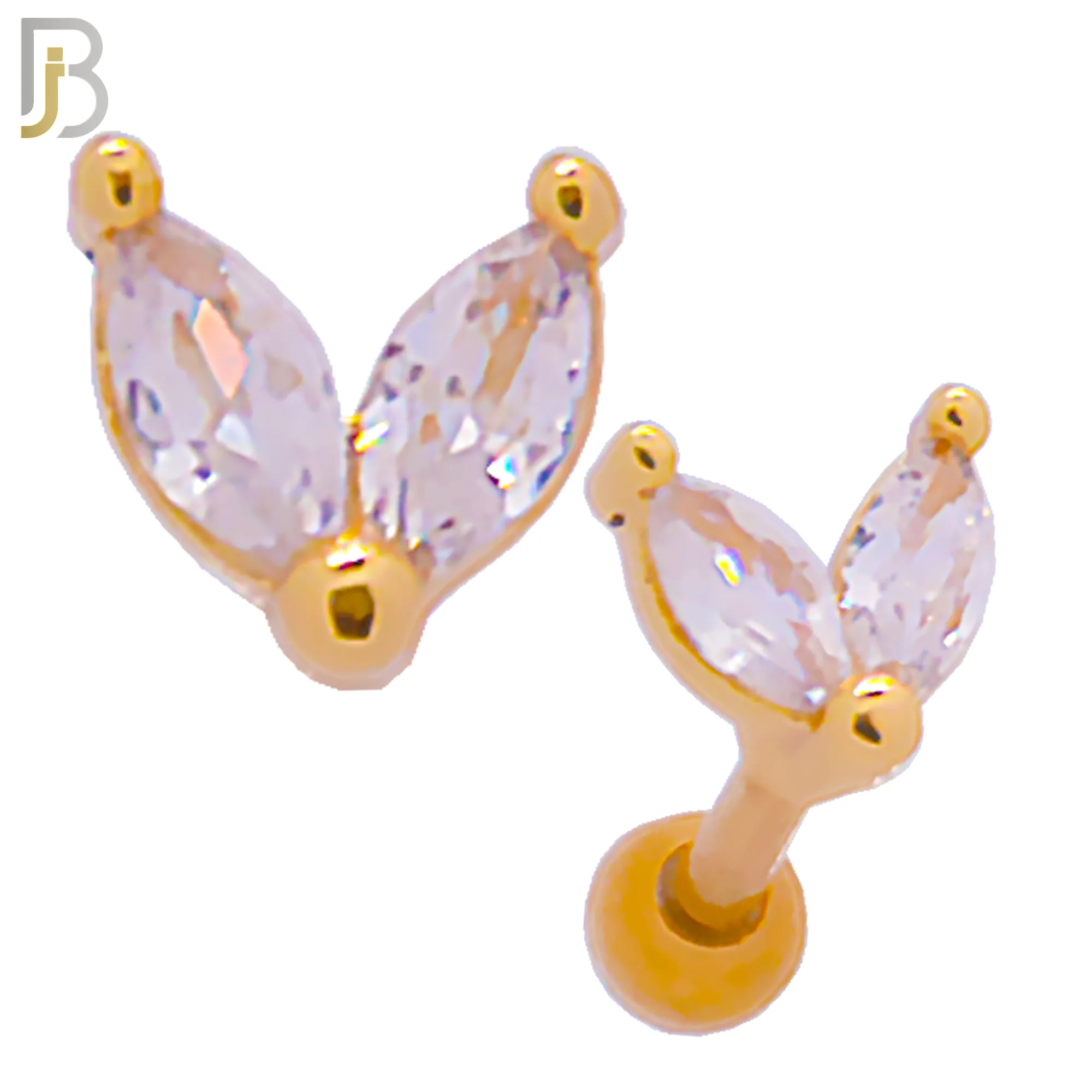 316L Surgical Steel 2 Leaf Design with Zircon Tragus Barbell Cartilage Piercing Screw Ball