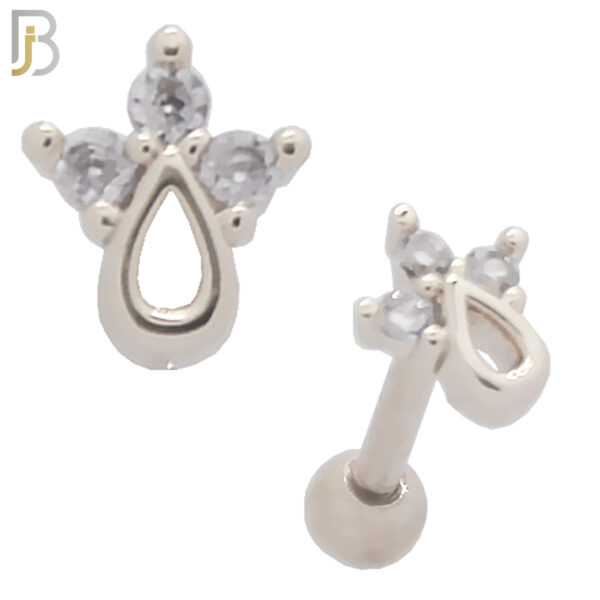 TB23 – 316L Surgical Steel 3 Petal Leaf with Zircon Tragus Barbell Cartilage Piercing Screw Ball (PACK OF 6)