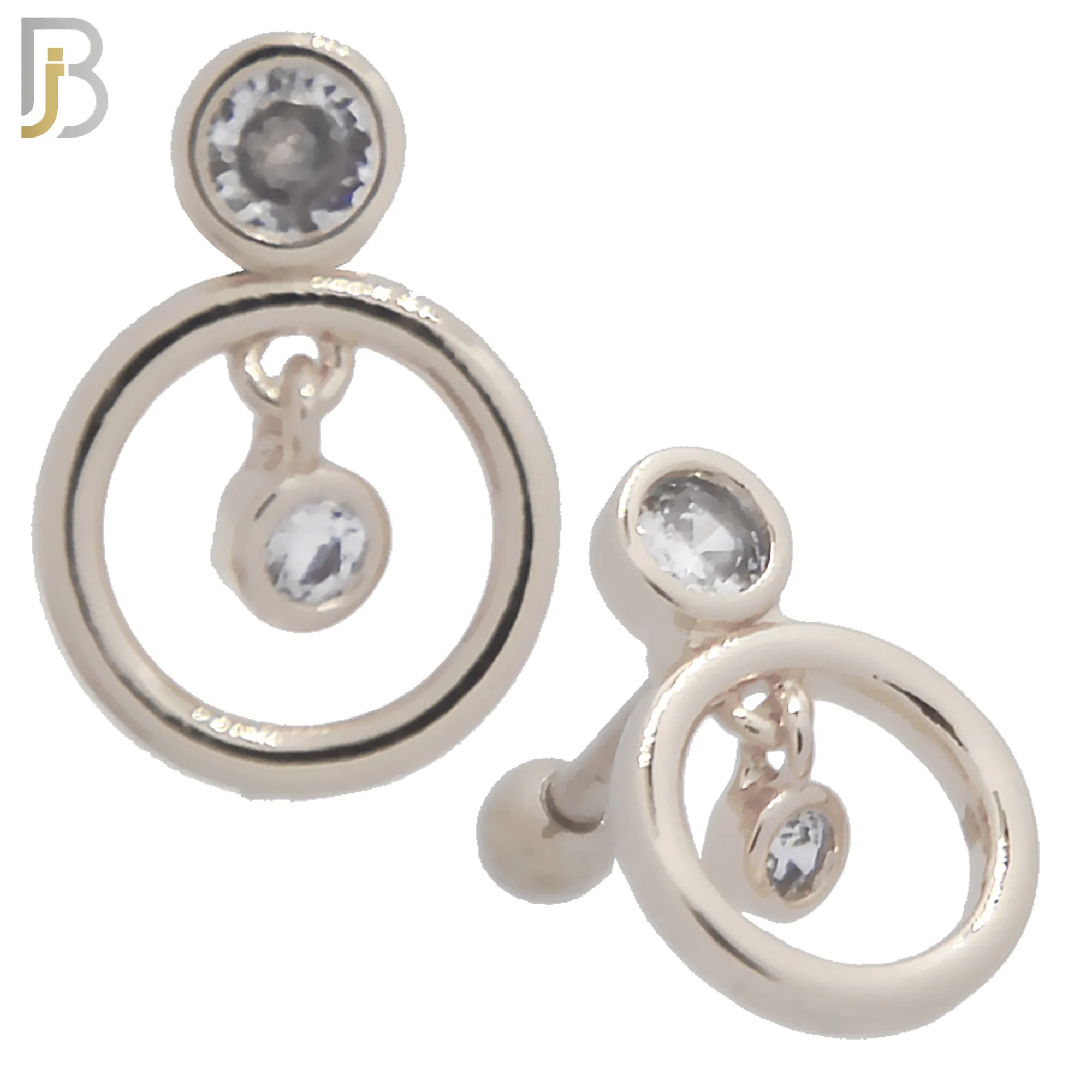 316L Stainless Steel and Brass Dangling Round Zircon in Hollow Ring Design Tragus Barbell Cartilage Piercing Screw Ball