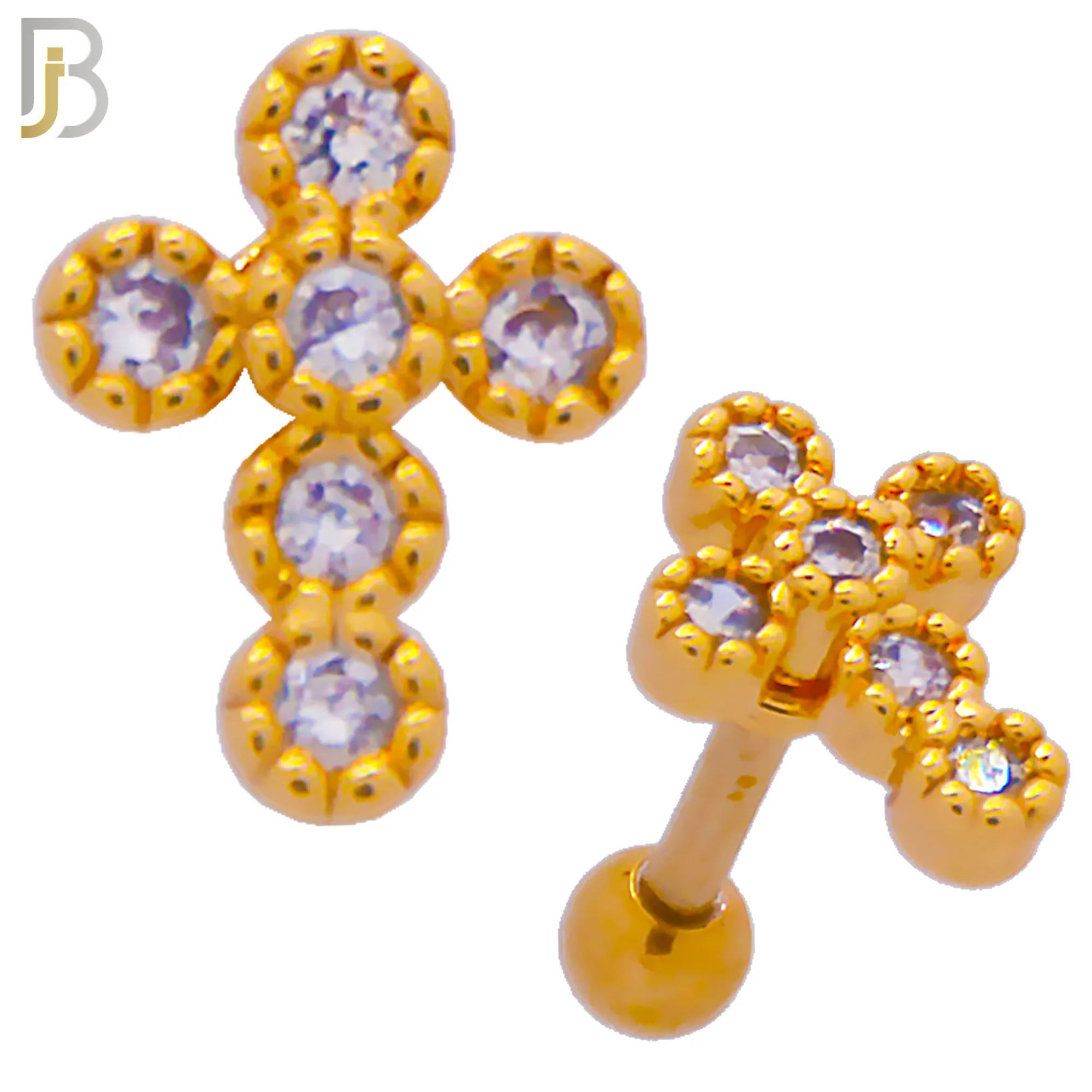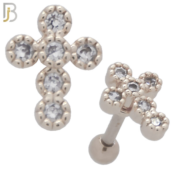TB41 – 316L Stainless Steel and Brass Cross with Zircon Design Tragus Barbell Cartilage Piercing Screw Ball (PACK OF 6)
