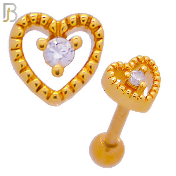 316L Stainless Steel and Brass Hollow Heart with Zircon Center Design Tragus Barbell Cartilage Piercing Screw Ball