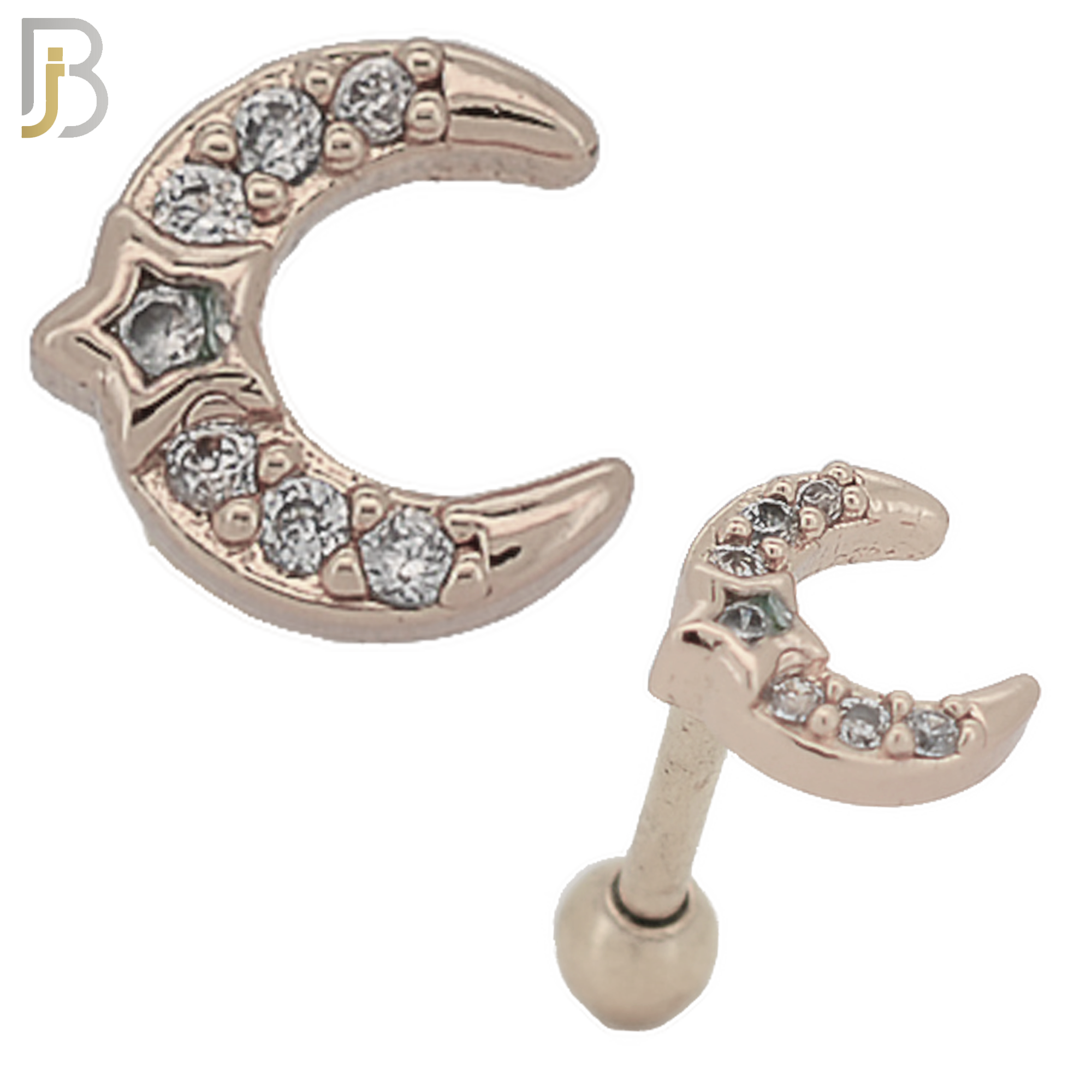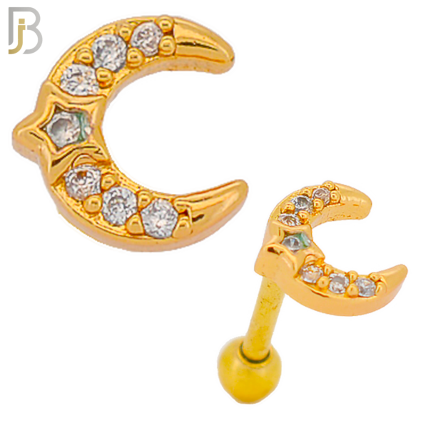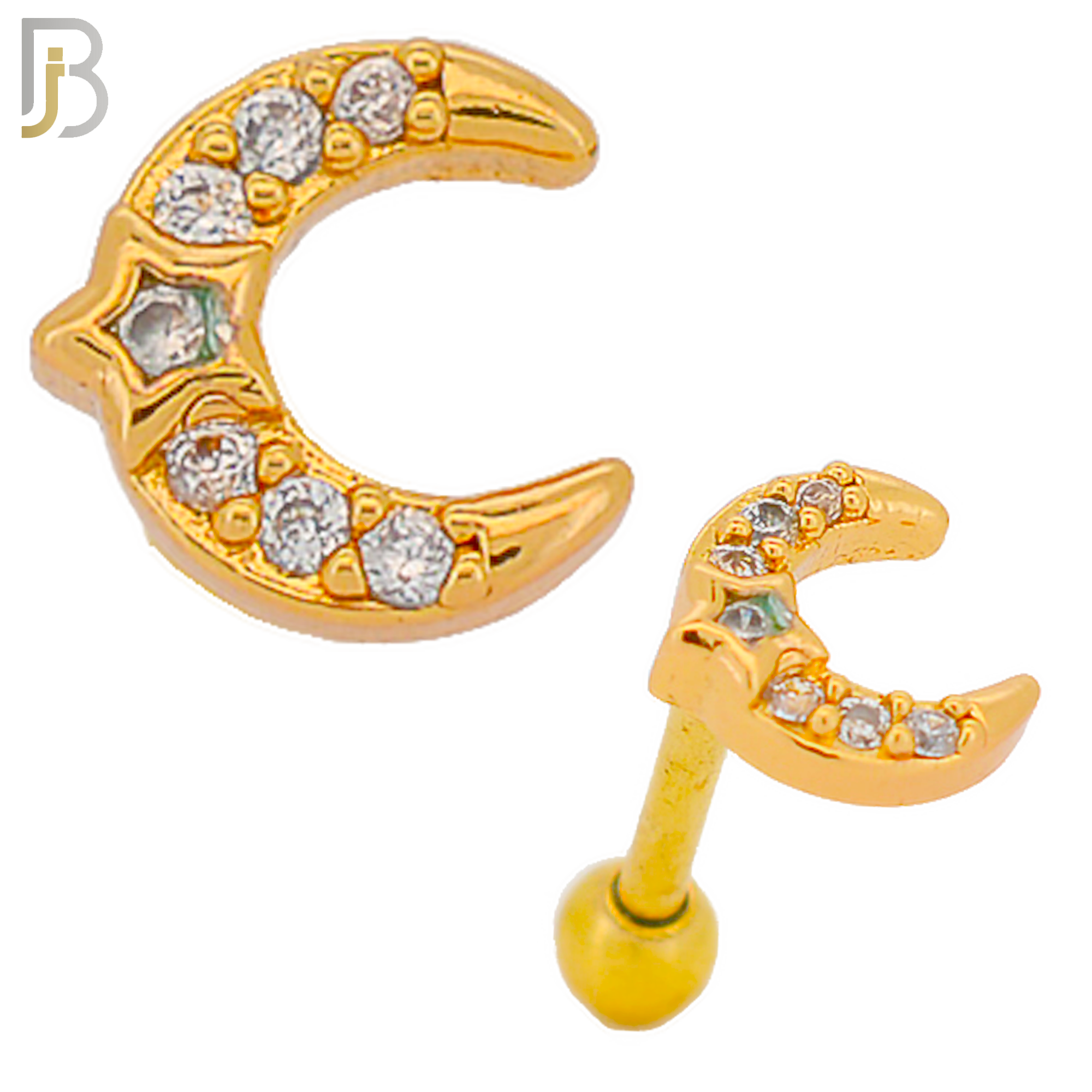 316L Stainless Steel and Brass Crescent Moon with Multi Zircon Design Tragus Barbell Cartilage Piercing Externally Threaded