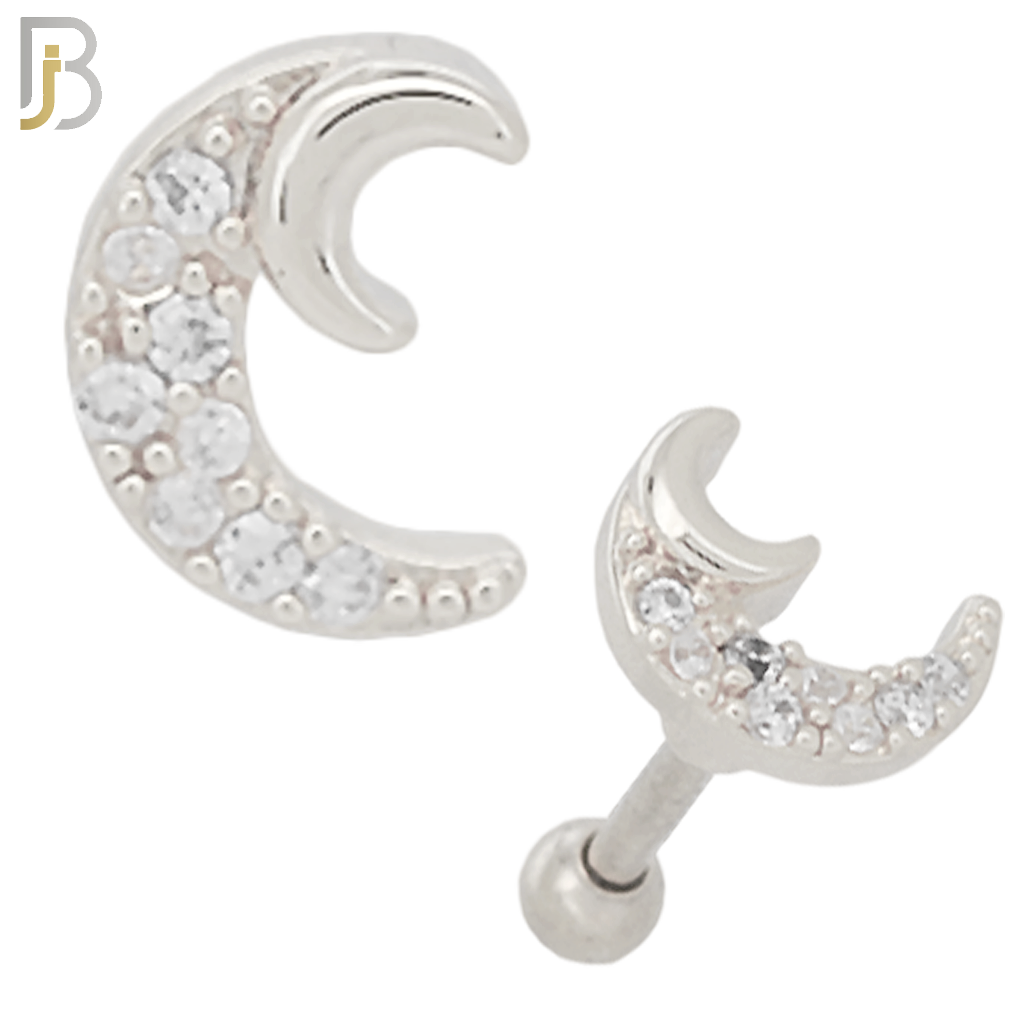 316L Stainless Steel Double Moon with Multi Zircon Tragus Barbell Cartilage Piercing Screw Ball Externally Threaded