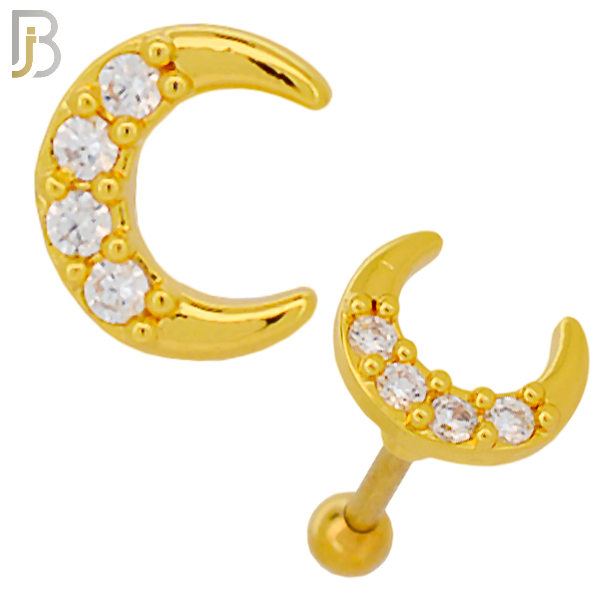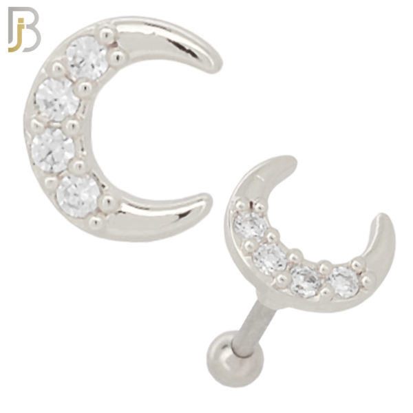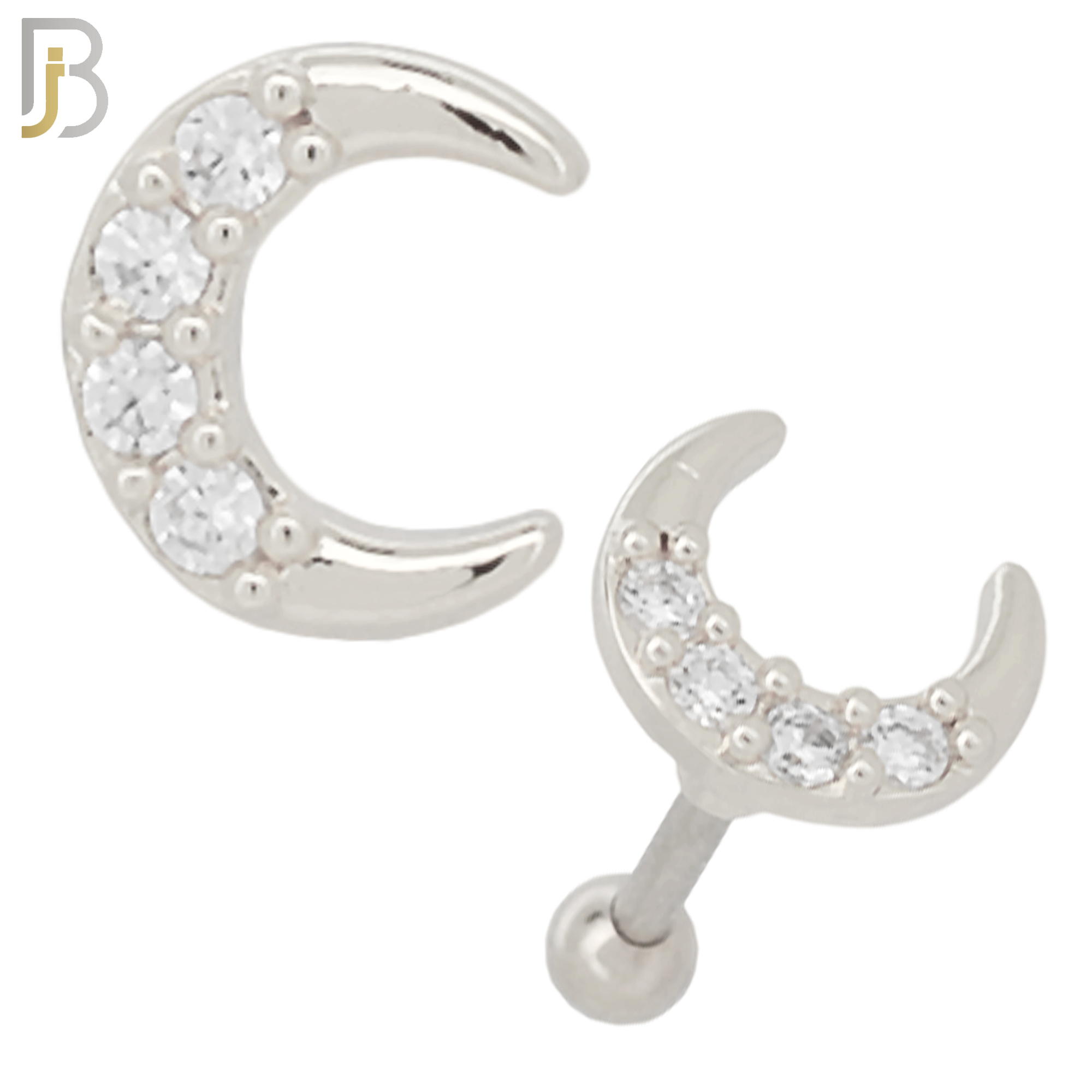 316L Stainless Steel Crescent Moon with Four Clear Round Zircon Tragus Barbell Cartilage Piercing Screw Ball Externally Threaded