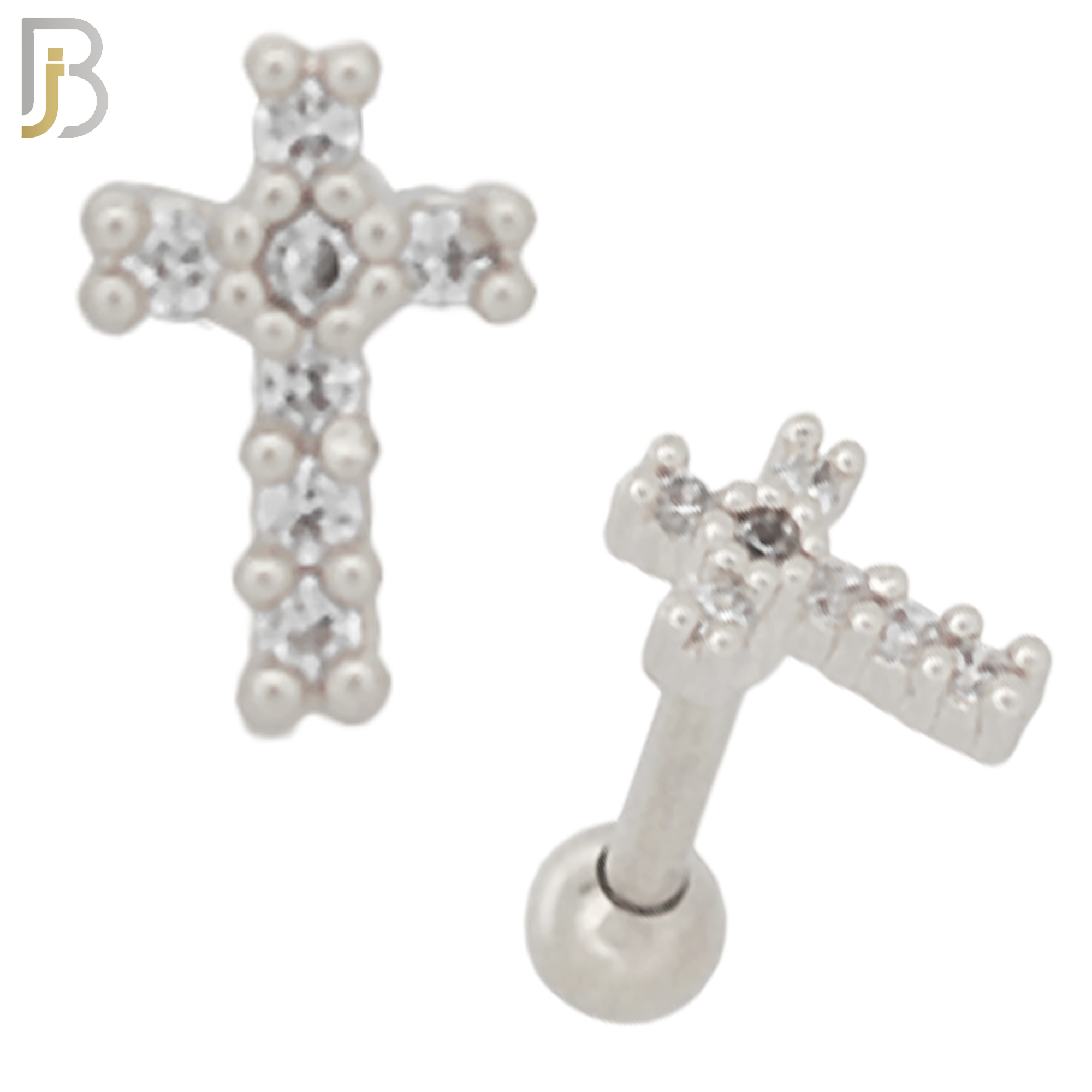 316L Stainless Steel Cross with Multi Zircon Tragus Barbell Cartilage Piercing Screw Ball Externally Threaded