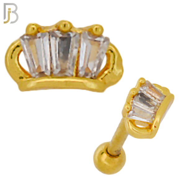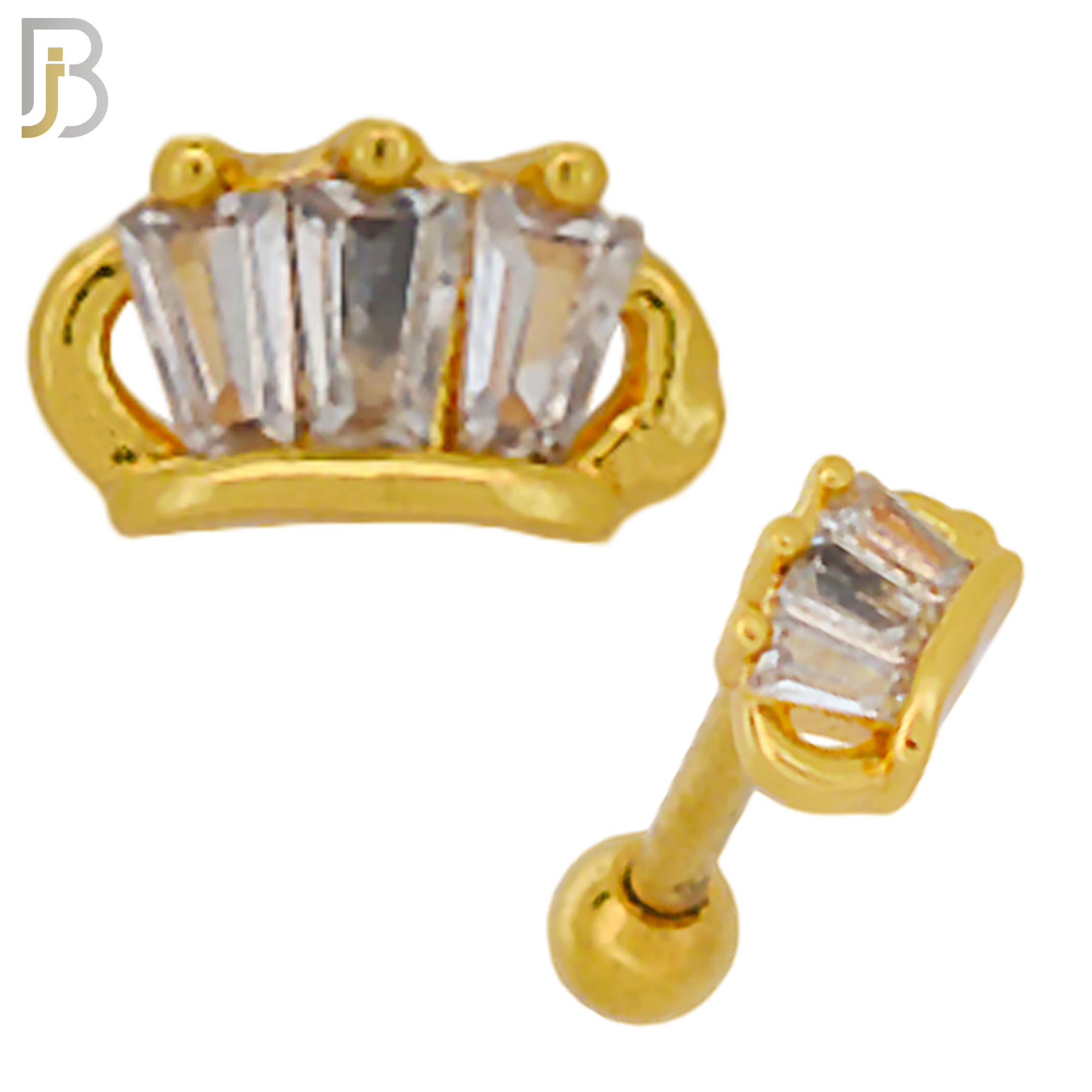 316L Stainless Steel Crown with Three Baguette Tragus Barbell Cartilage Piercing Screw Ball Externally Threaded
