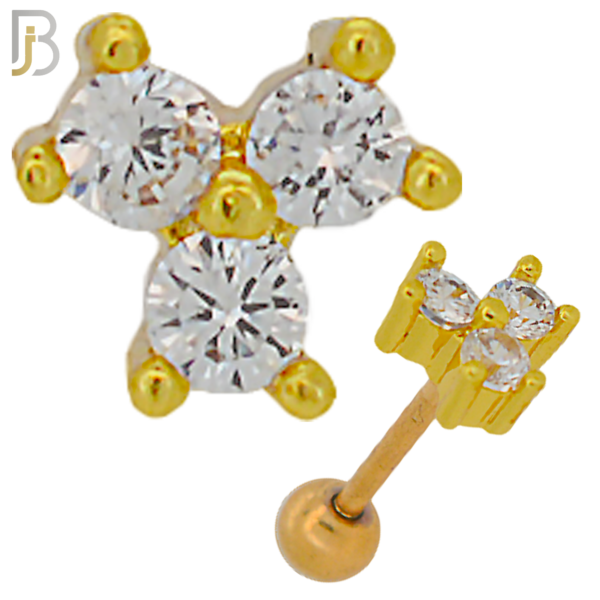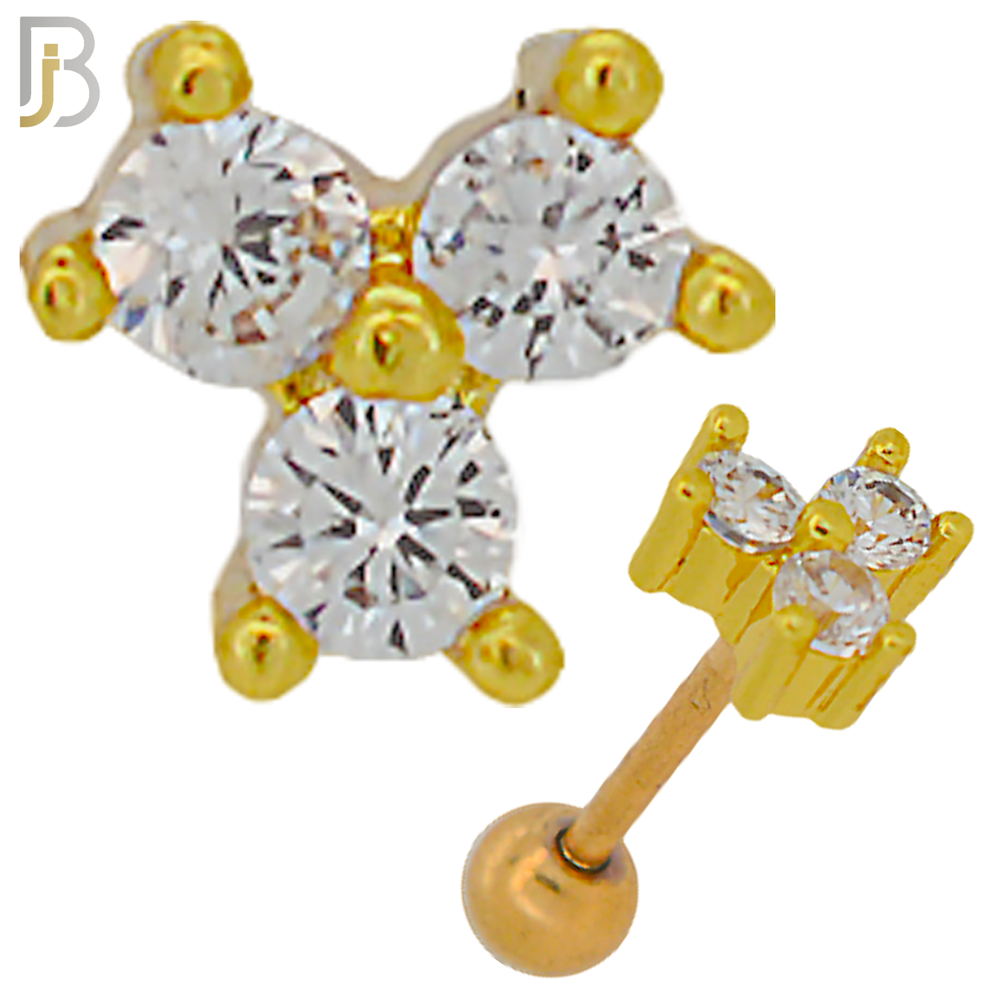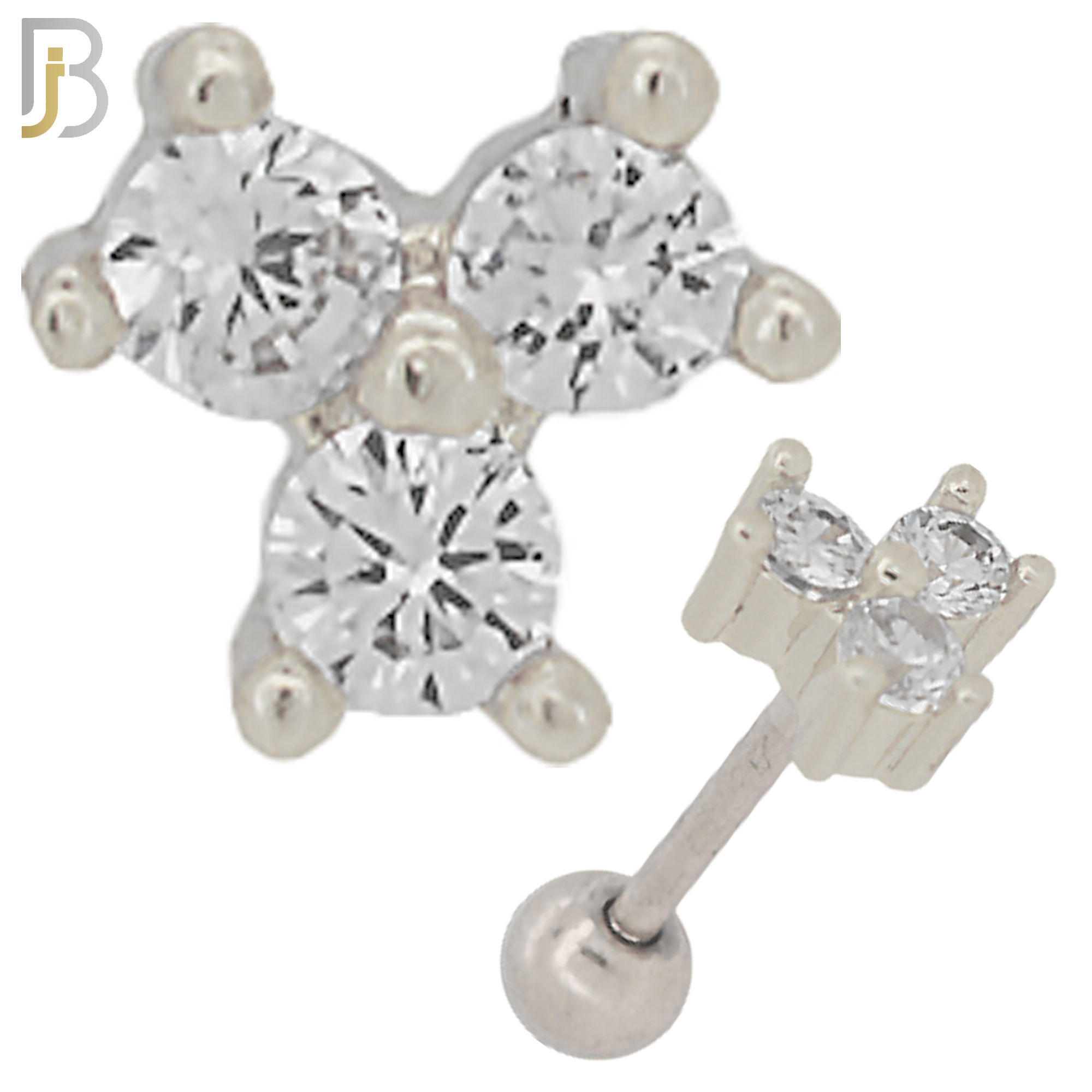 316L Stainless Steel Three CZ Triangle Tragus/Cartilage Barbell