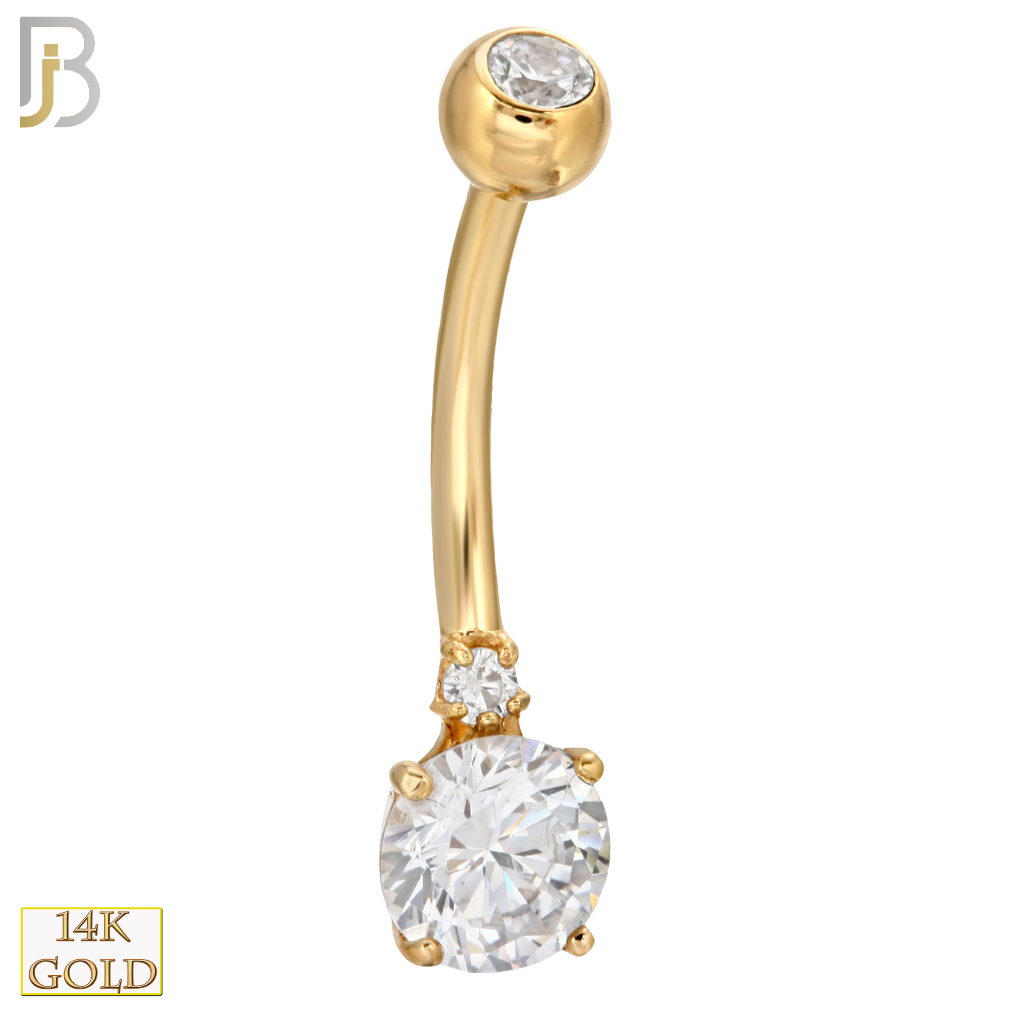 14-NB02 – 14k Solid Gold Banana Belly Ring Double Round Prong Setting Zircon