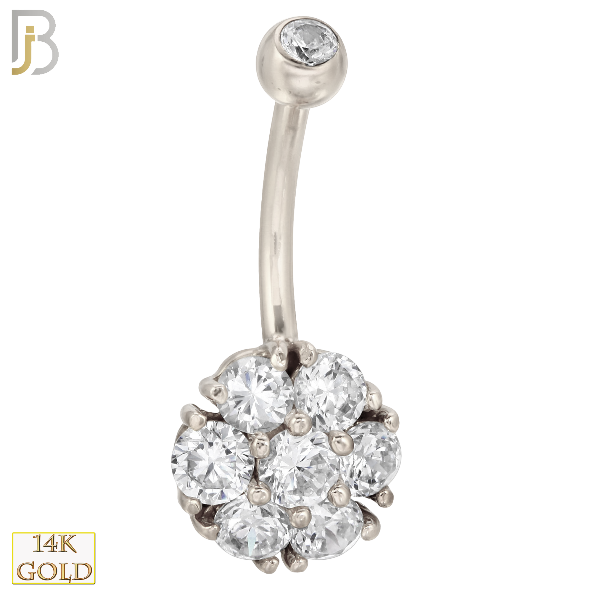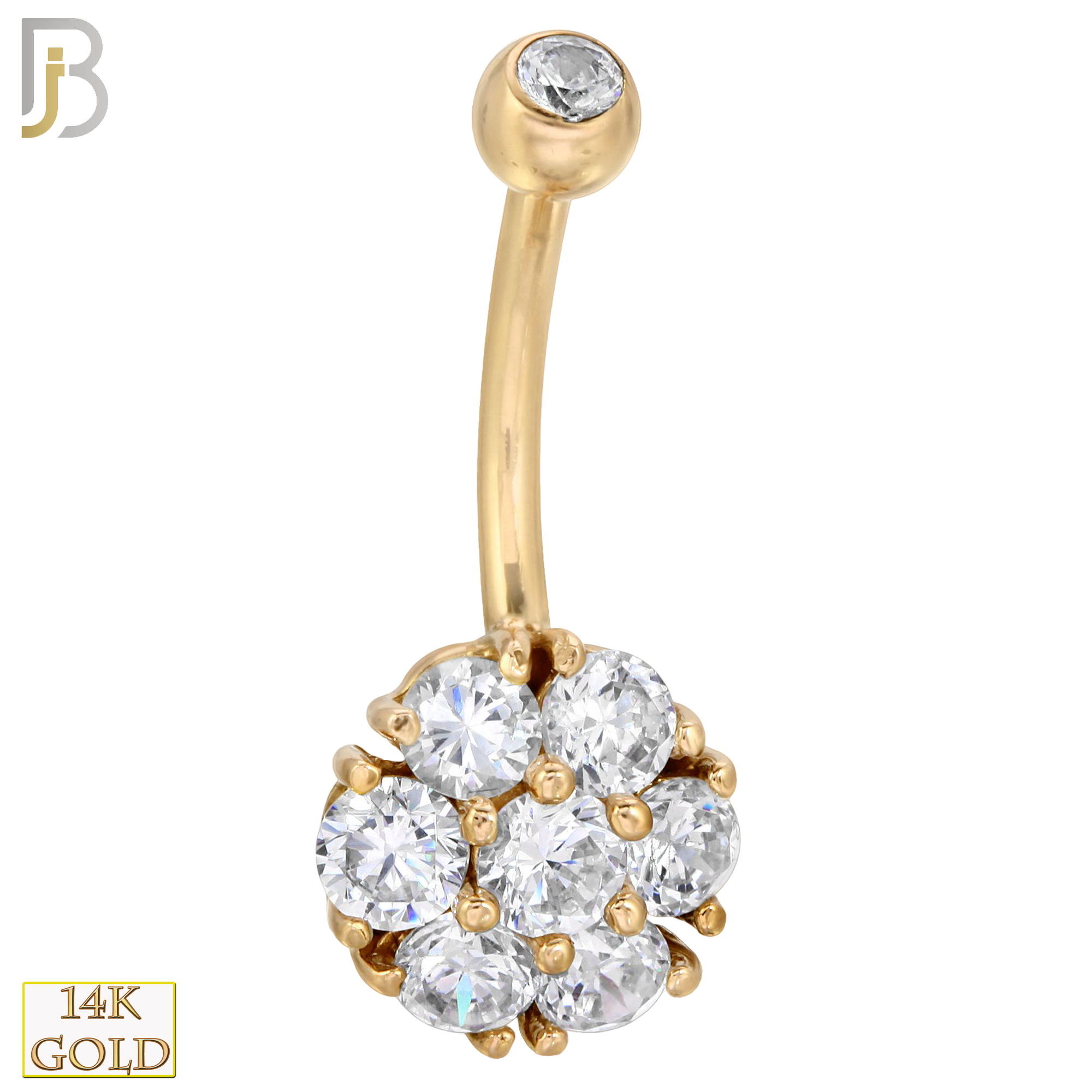 14k Solid Gold Banana Belly Ring with 10mm Flower Design