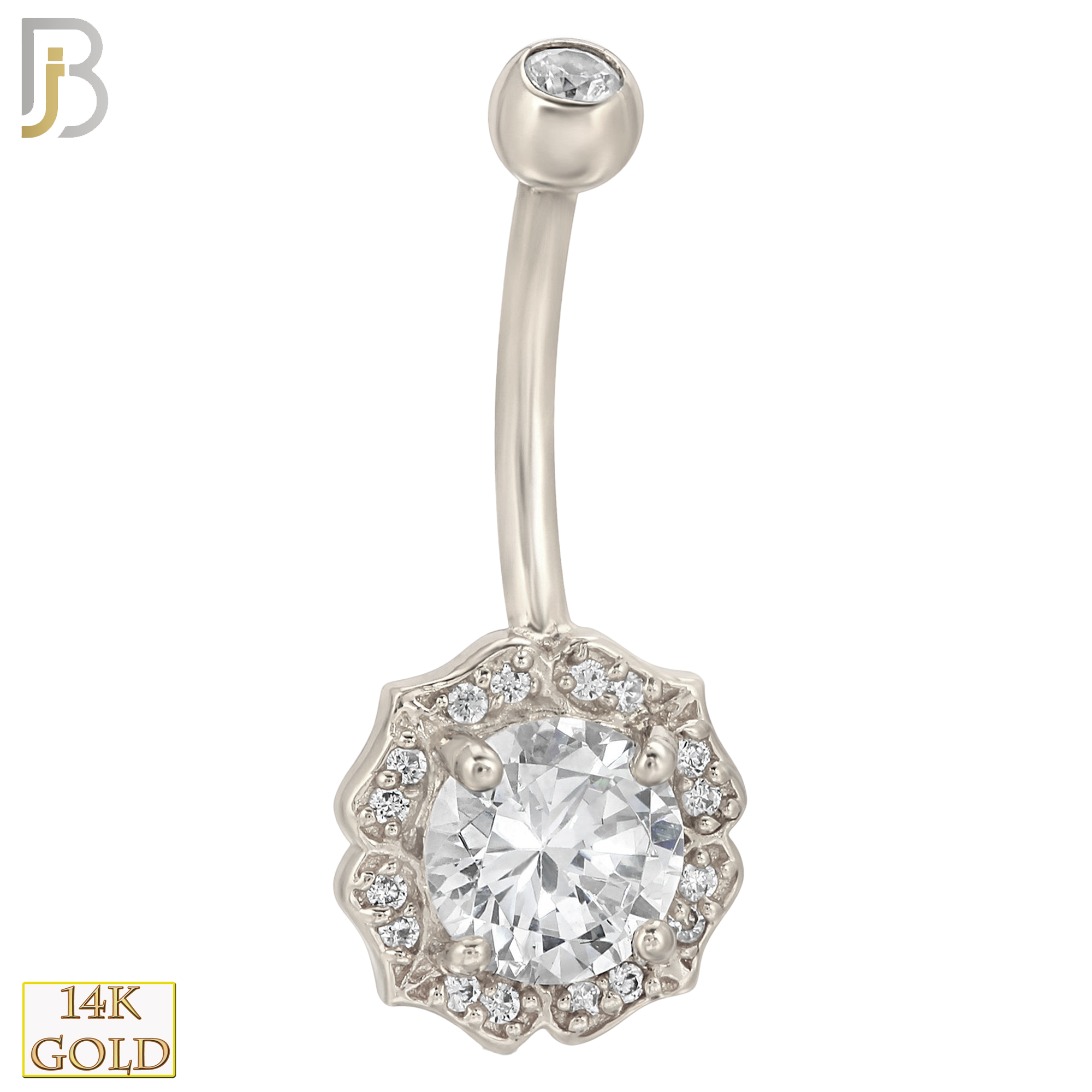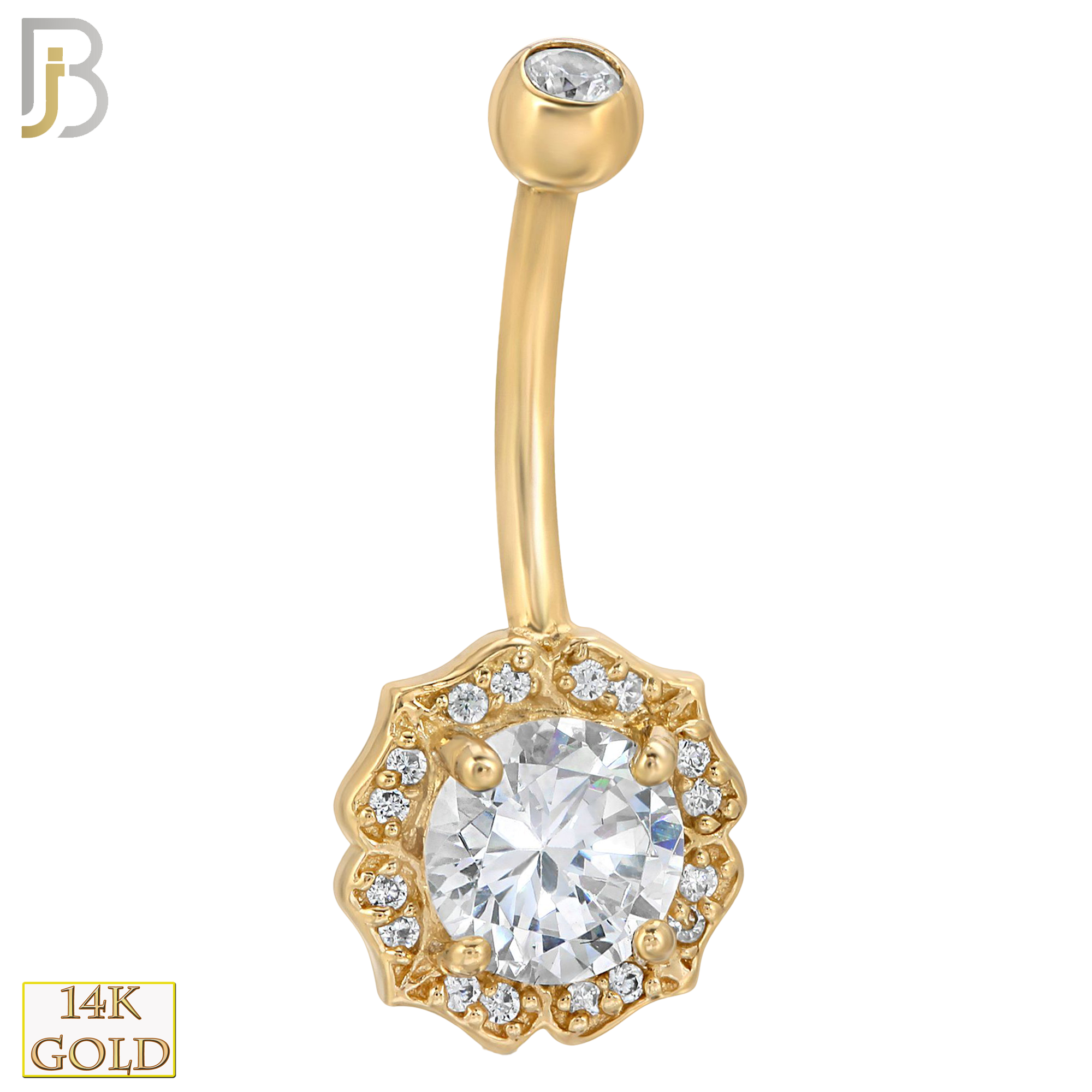 14k Solid Gold Banana Belly Ring with 10.3mm Flower Design