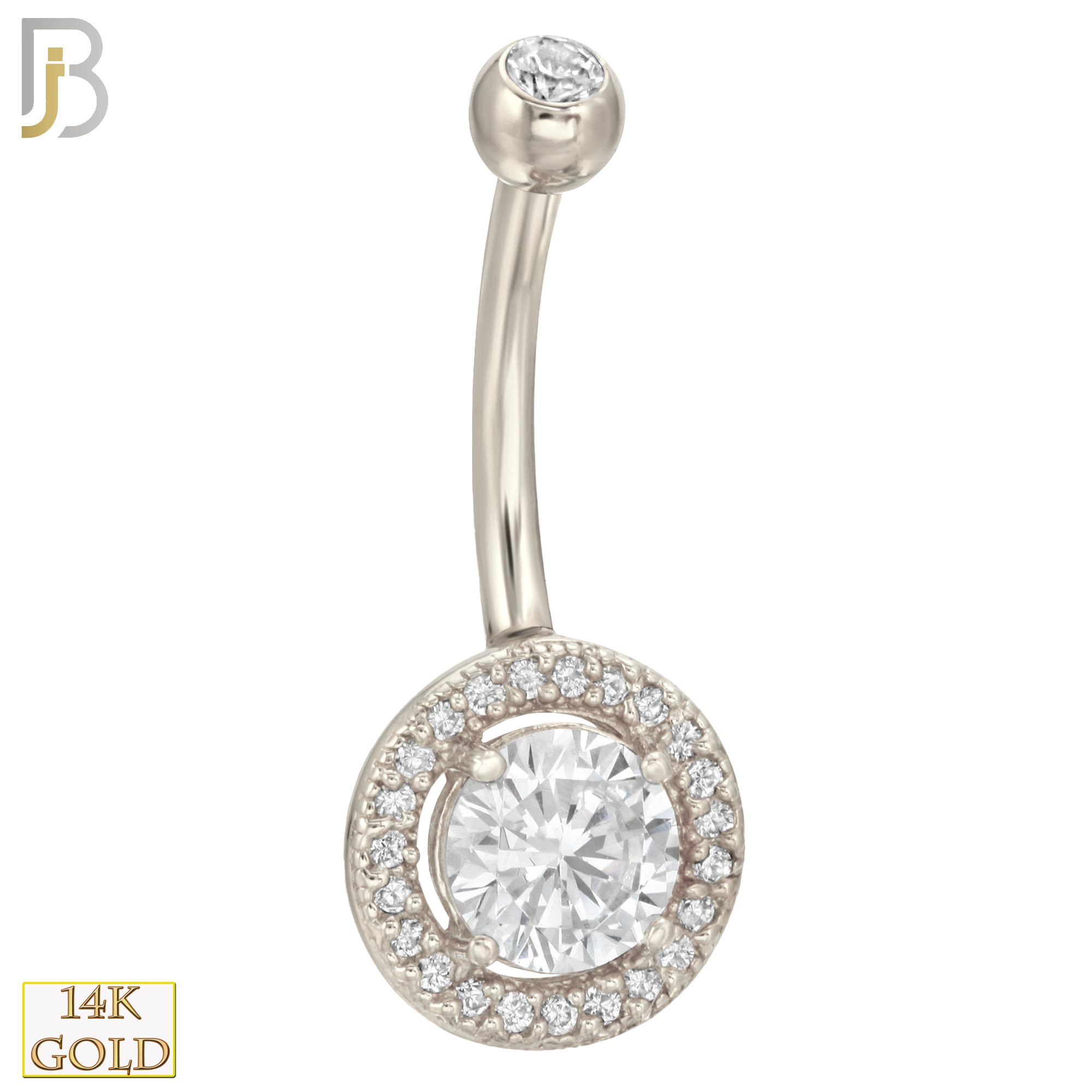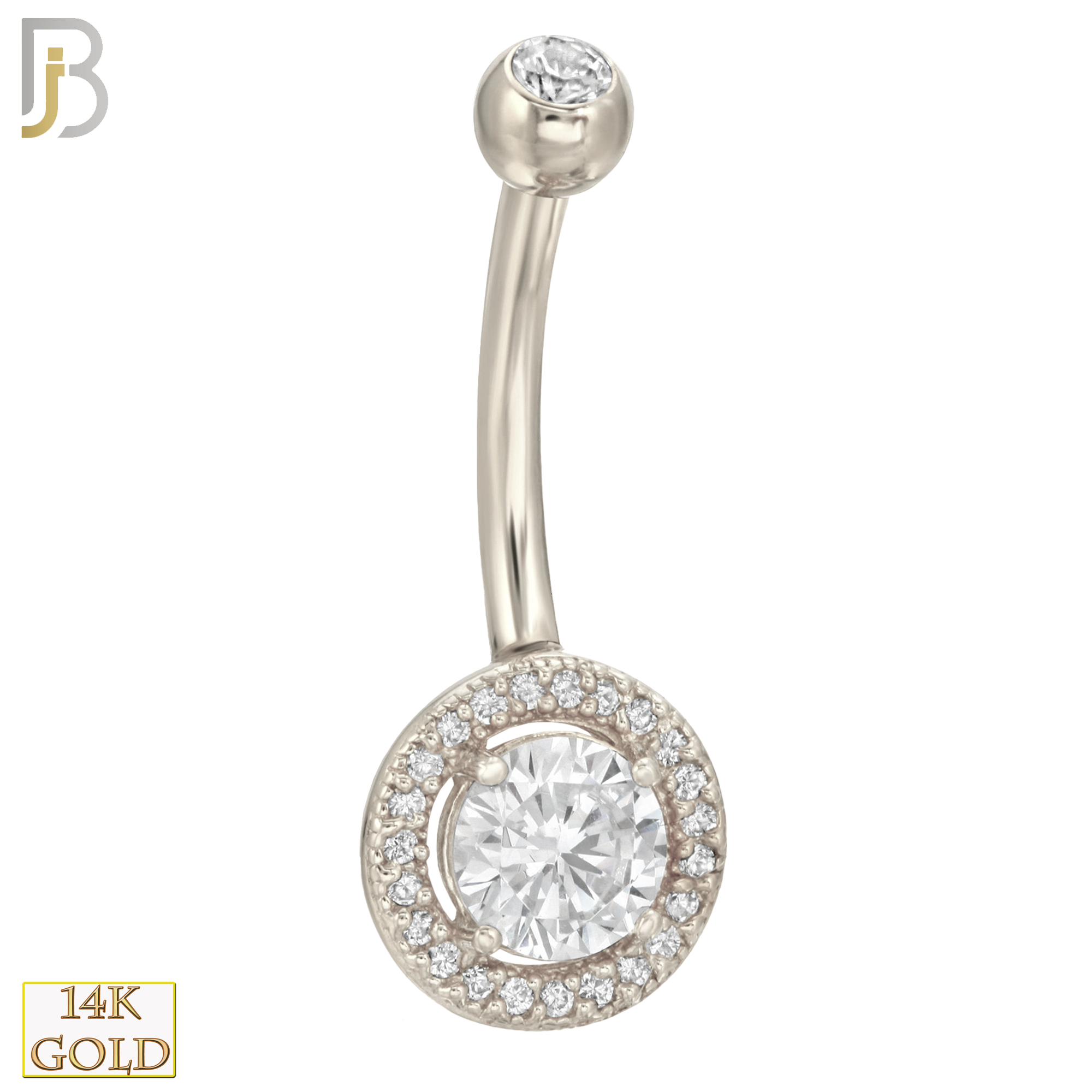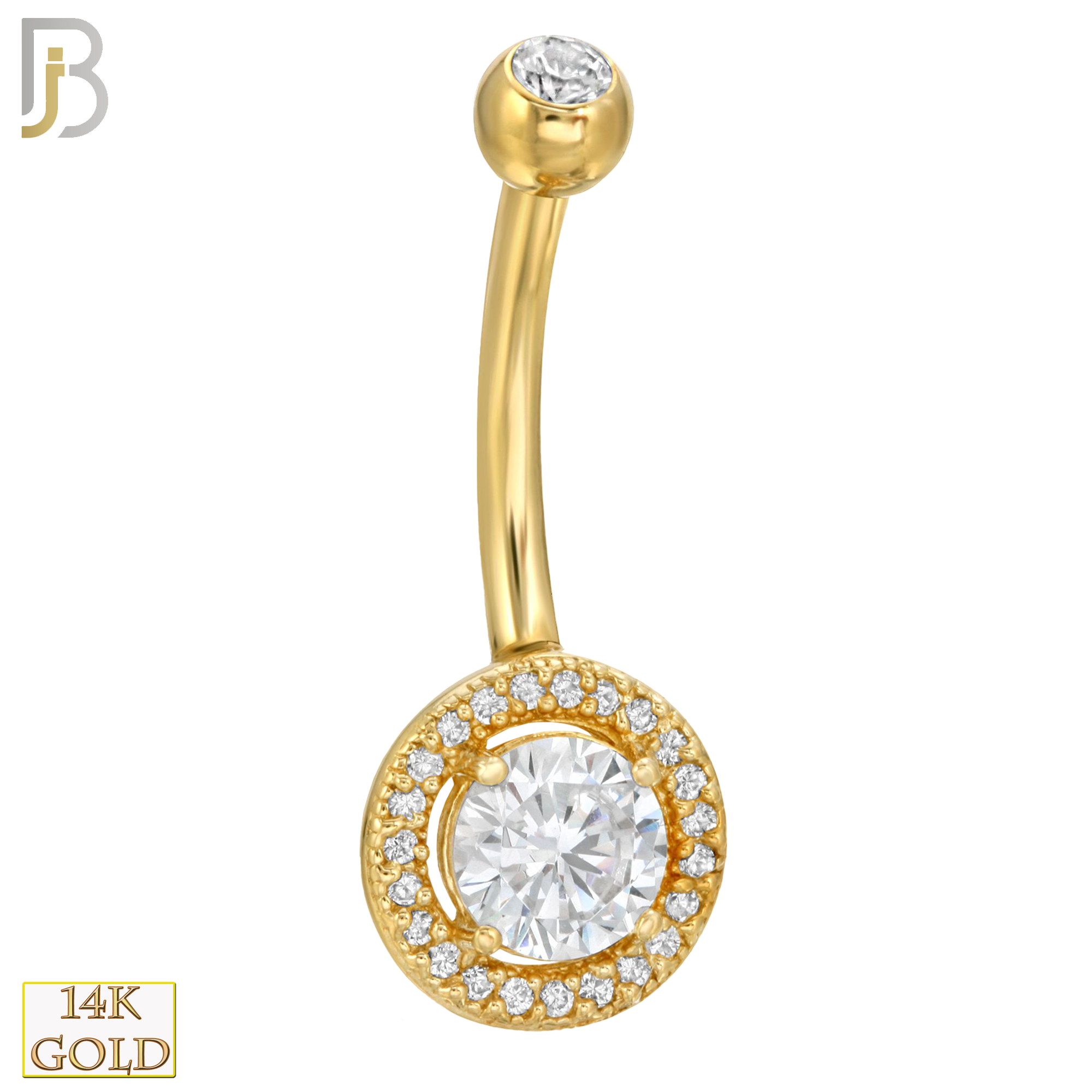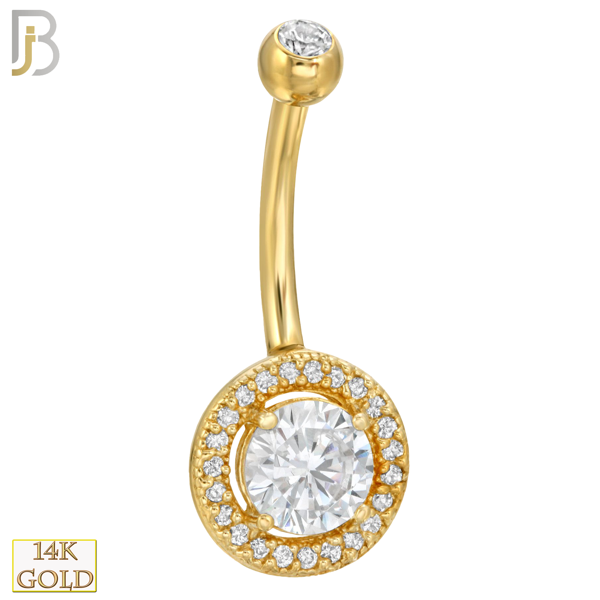 14k Solid Gold Banana Belly Ring with Round CZ Design