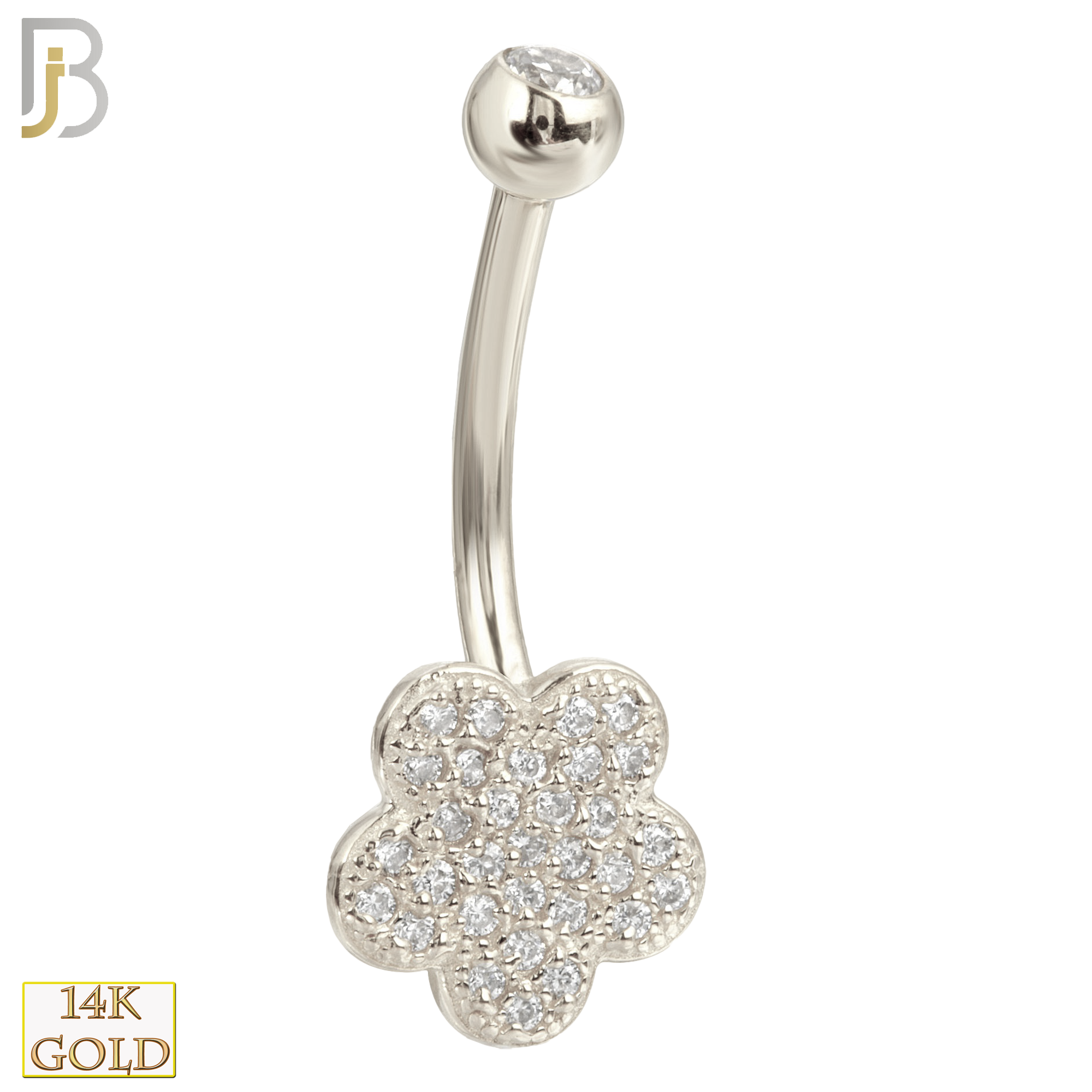 14k Solid Gold Banana Belly Ring with 9mm Flower Design