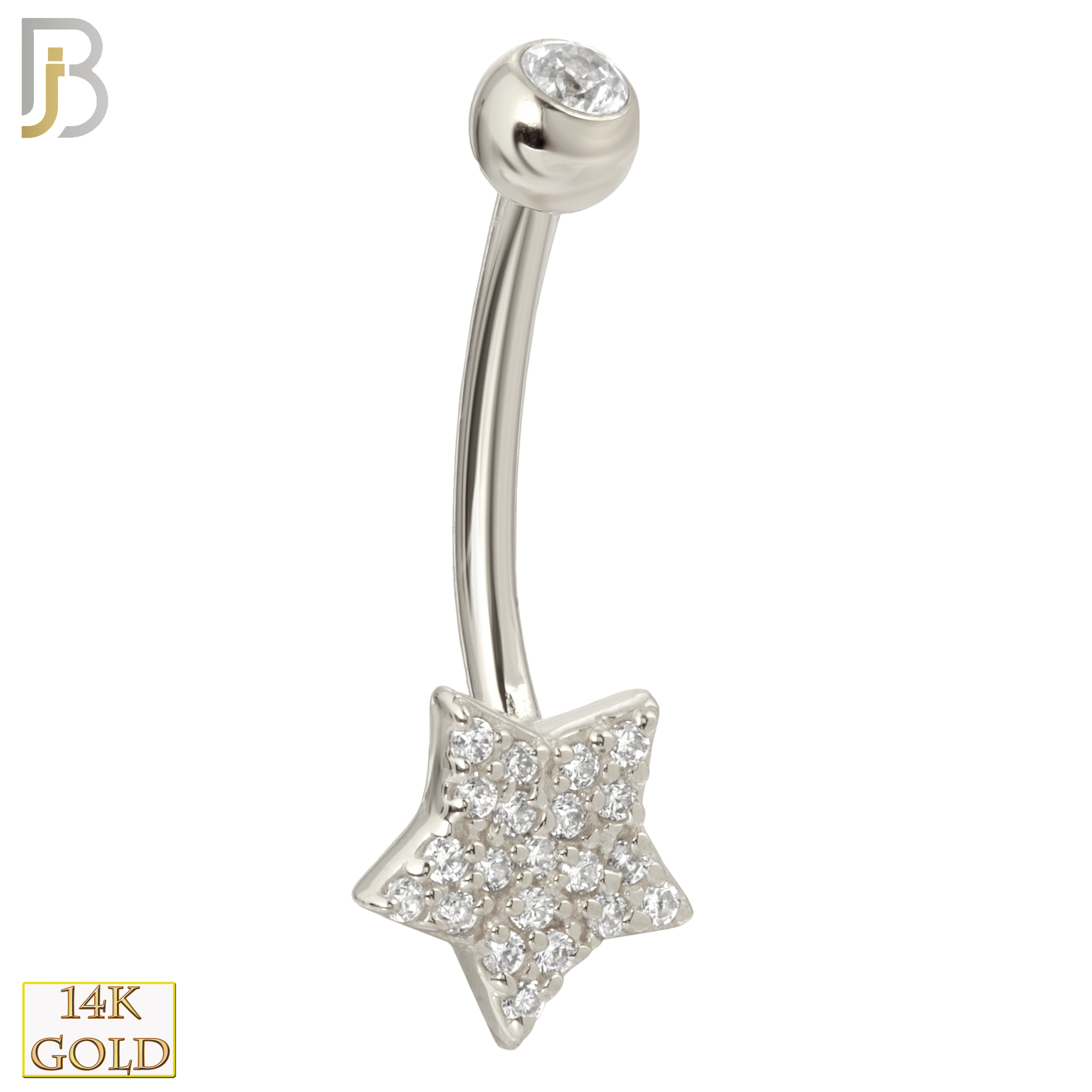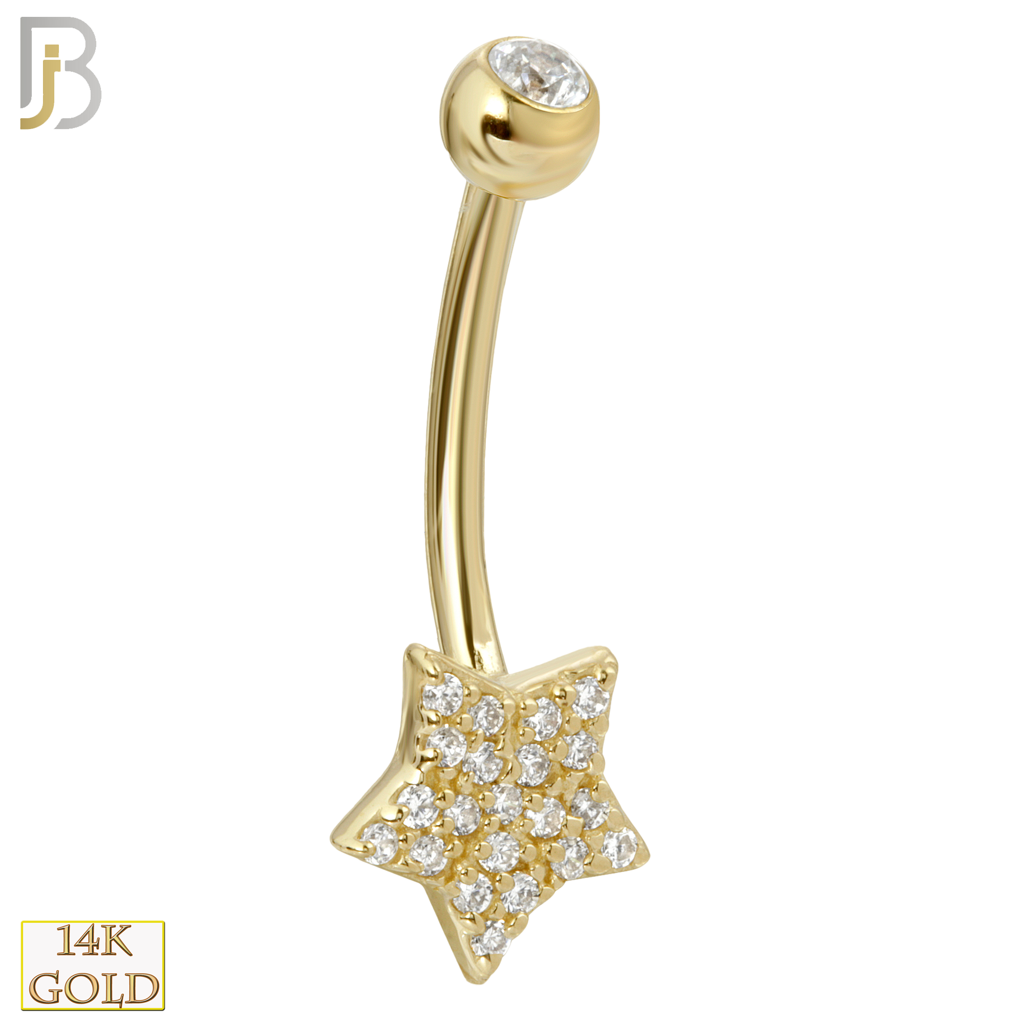 14-NB16 – 14k Solid Gold Banana Belly Ring with 8mm Star Design