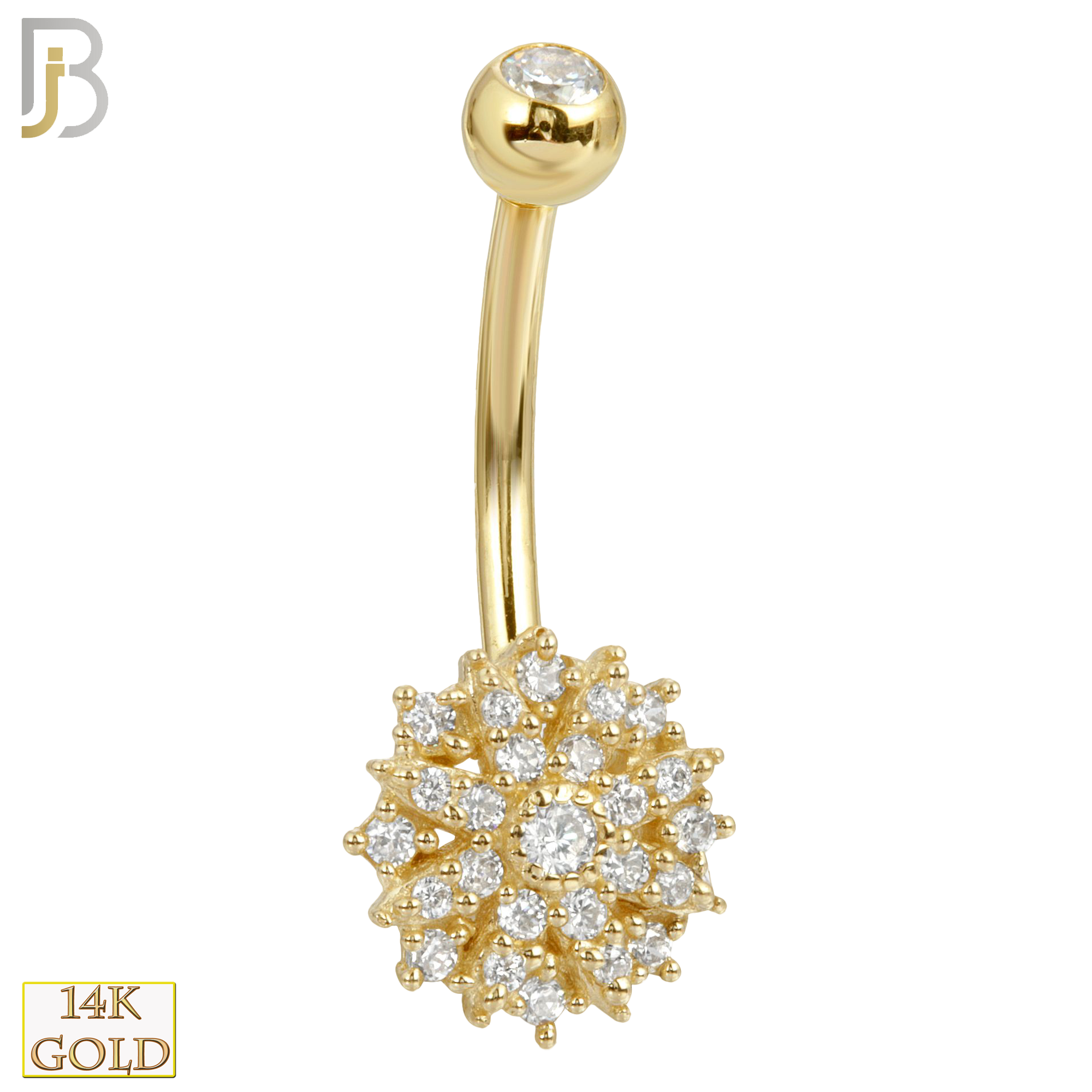 14k Solid Gold Banana Belly Ring with 10mm Flower Design