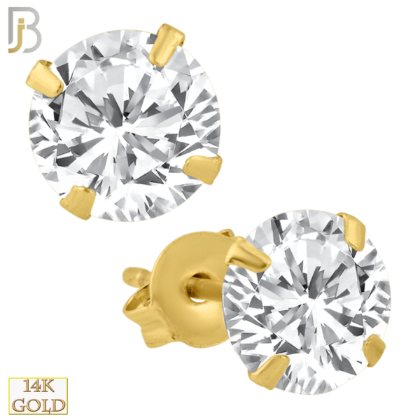 14k Yellow Gold Push Back Stud Earrings Stamping Prong Setting with Round Clear Zircon