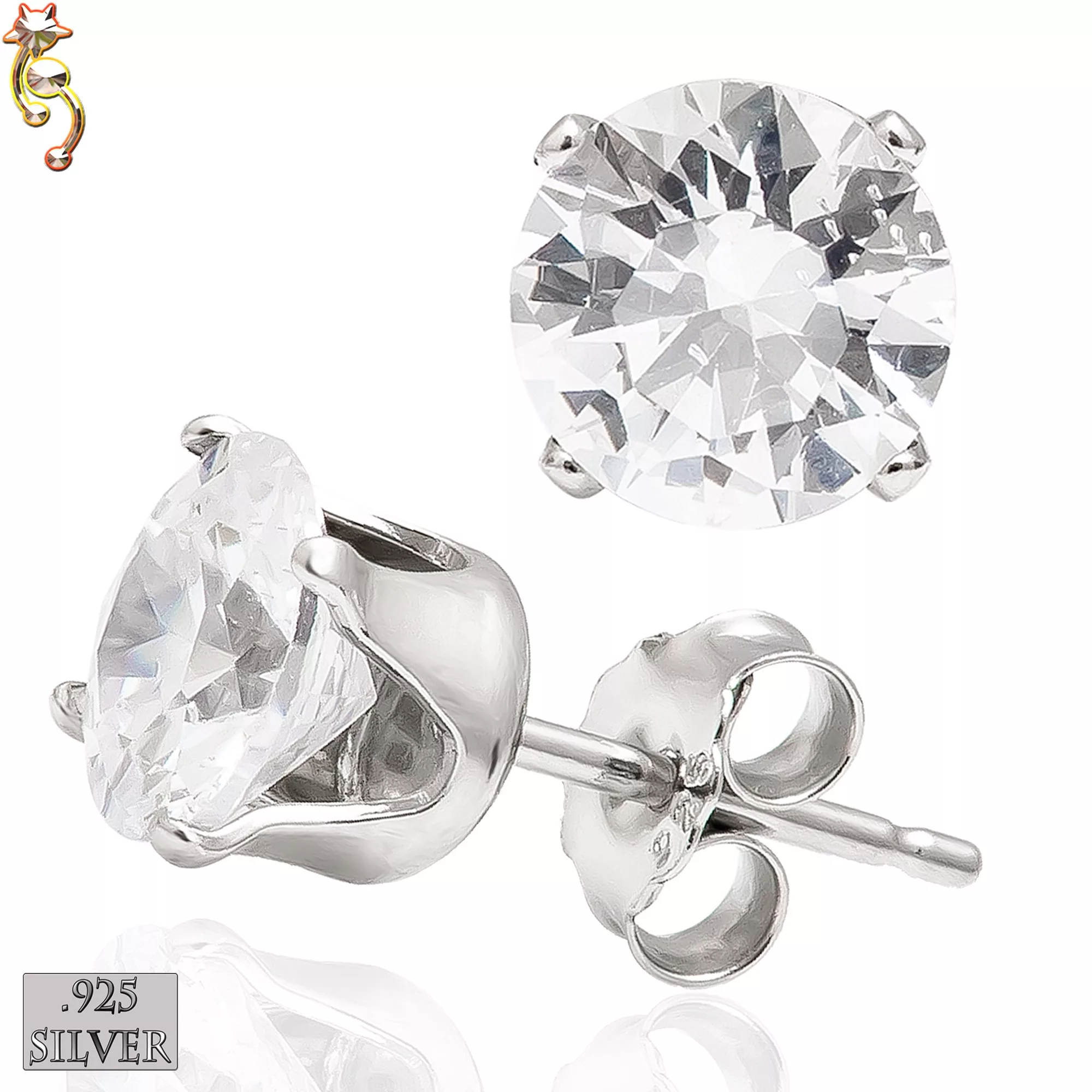 .925 Sterling Silver Ear Stud Stamping Round Prong Setting Clear Zircon