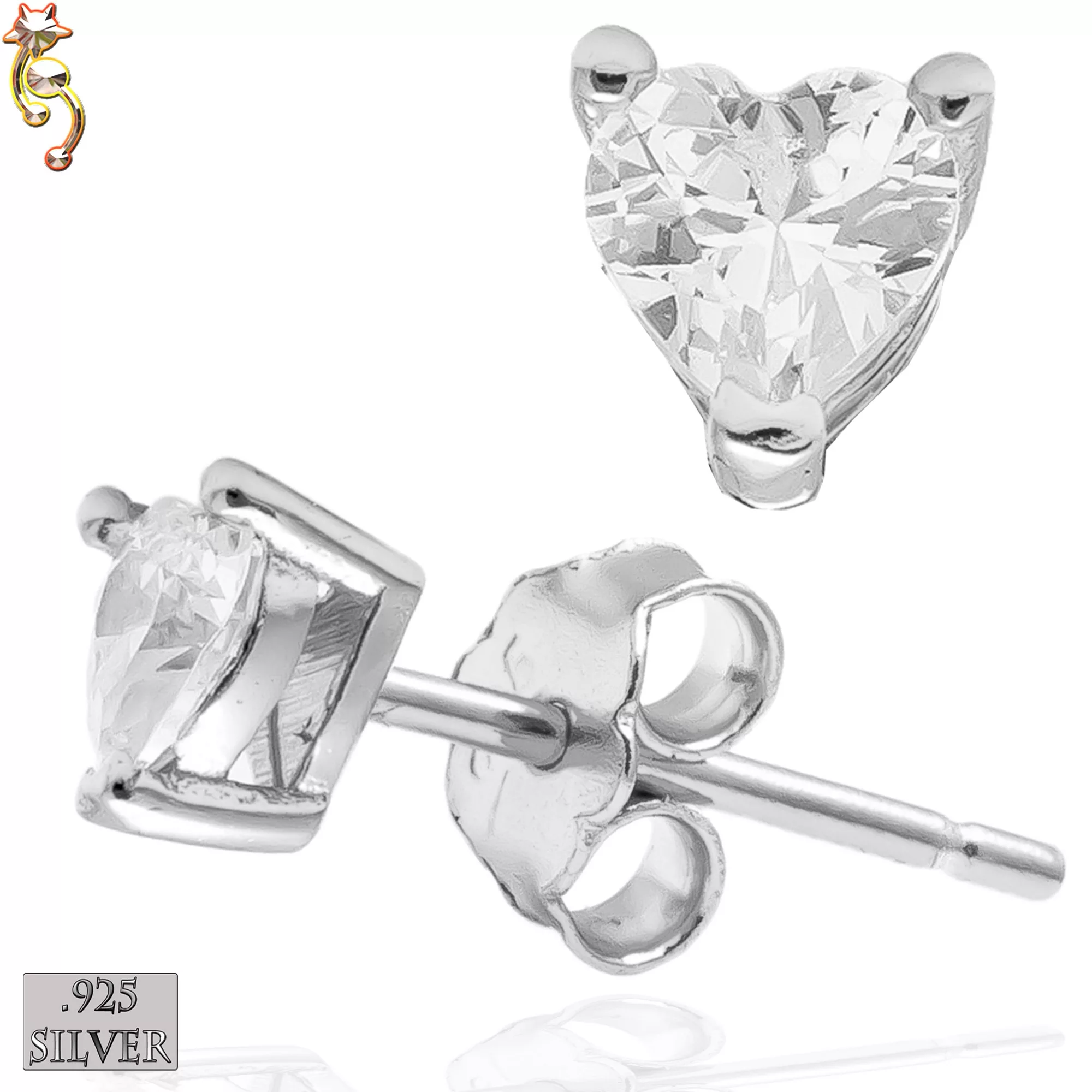 .925 Sterling Silver Ear Stud Casting Heart Prong Setting Clear Zircon