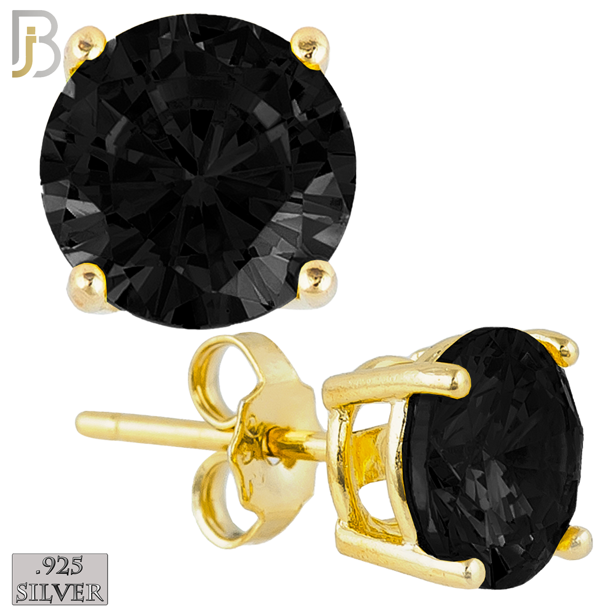 ES71-GK – .925 Sterling Silver Gold Plated Earring Stud Casting Round Prong Setting Black Zircon