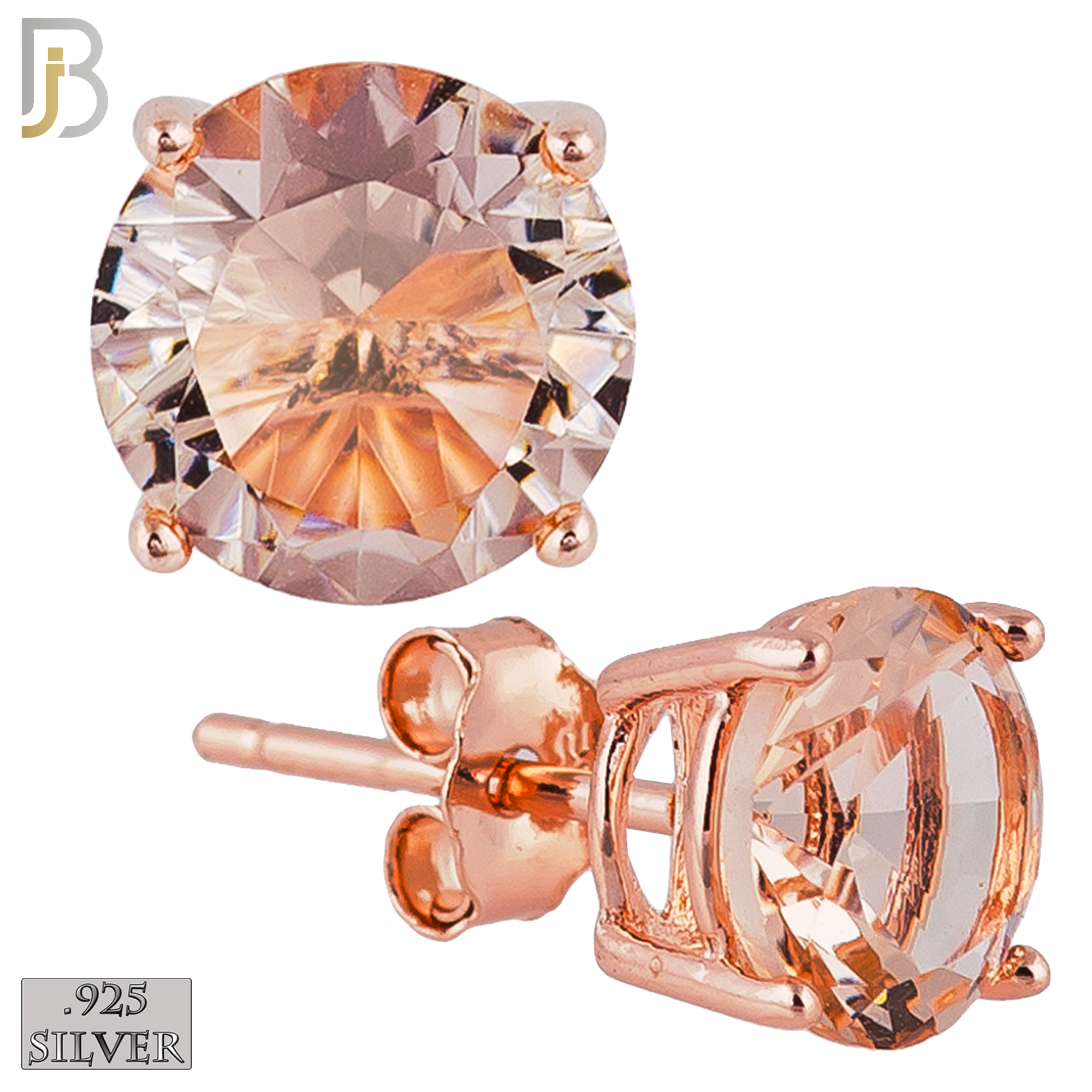 ES71-RR – .925 Sterling Silver Rose Gold Plated Earring Stud Casting Round Prong Setting Champagne Zircon
