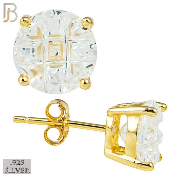 ES73-GC – .925 Sterling Silver Gold Plated Earring Stud Casting Round Invisible Cut Prong Setting Clear Zircon