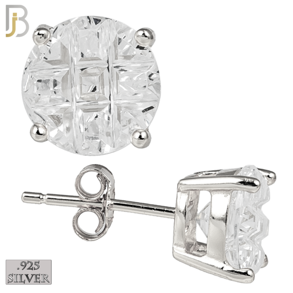 .925 Sterling Silver Ear Stud Casting Round Prong Setting Clear Zircon