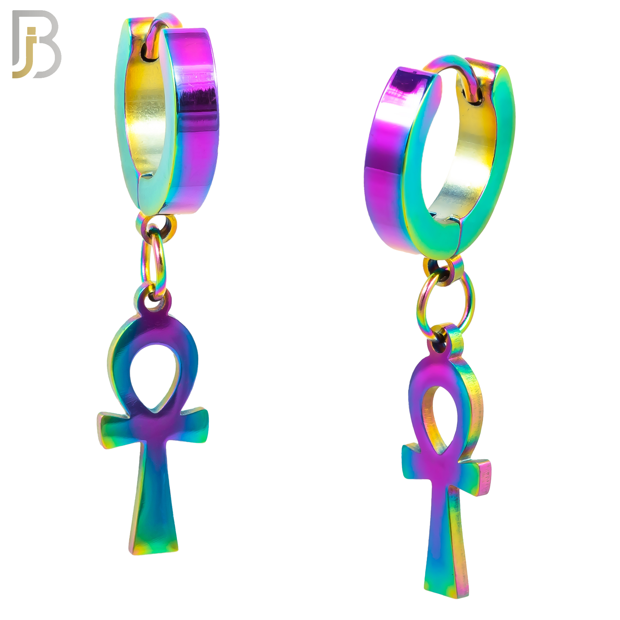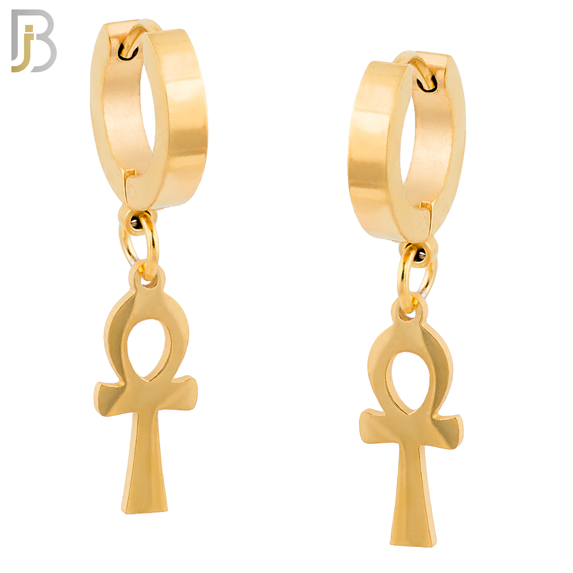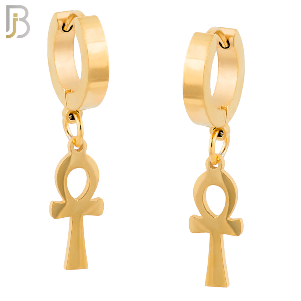 316L Stainless Steel Dangling Ankh Cross Design Huggies Clip On