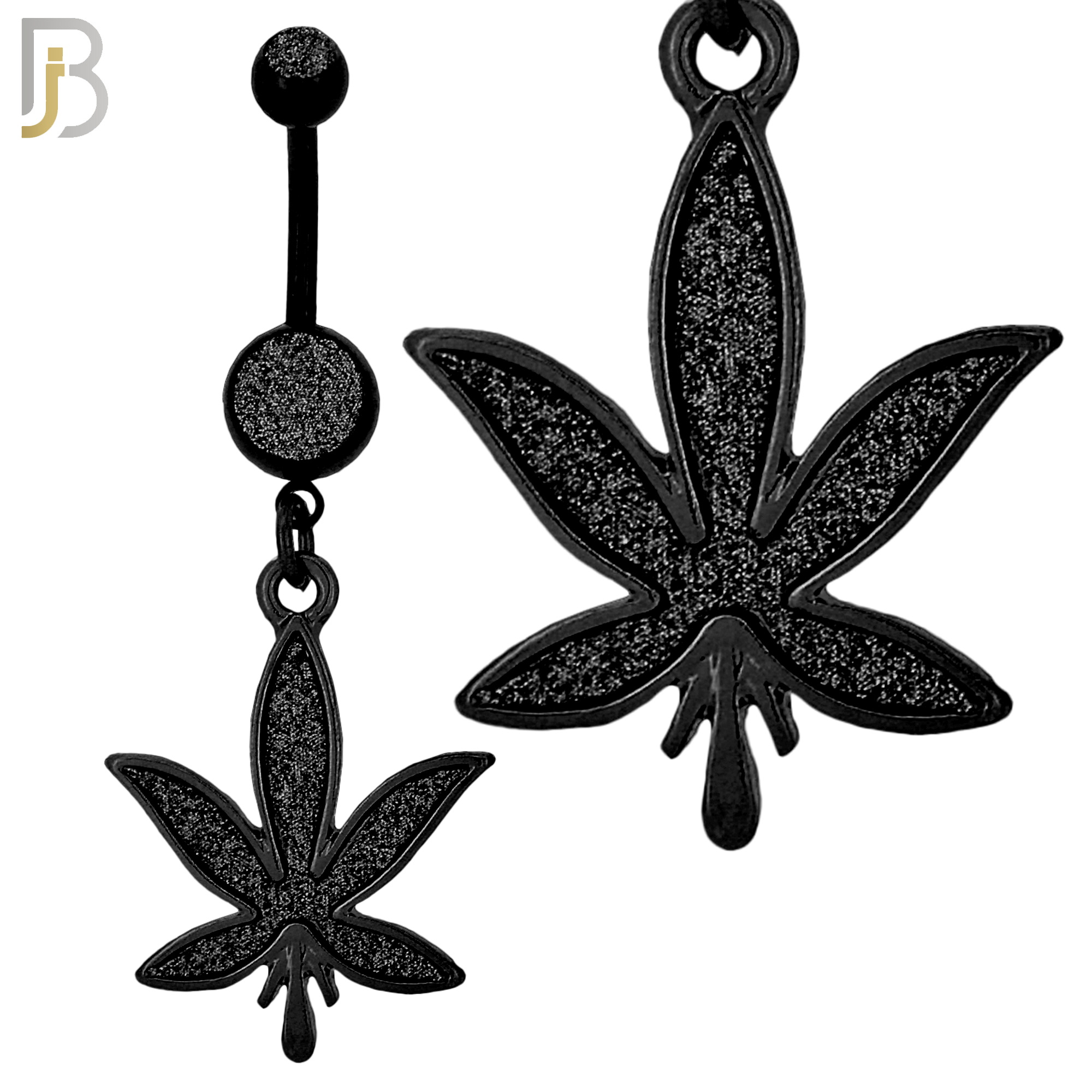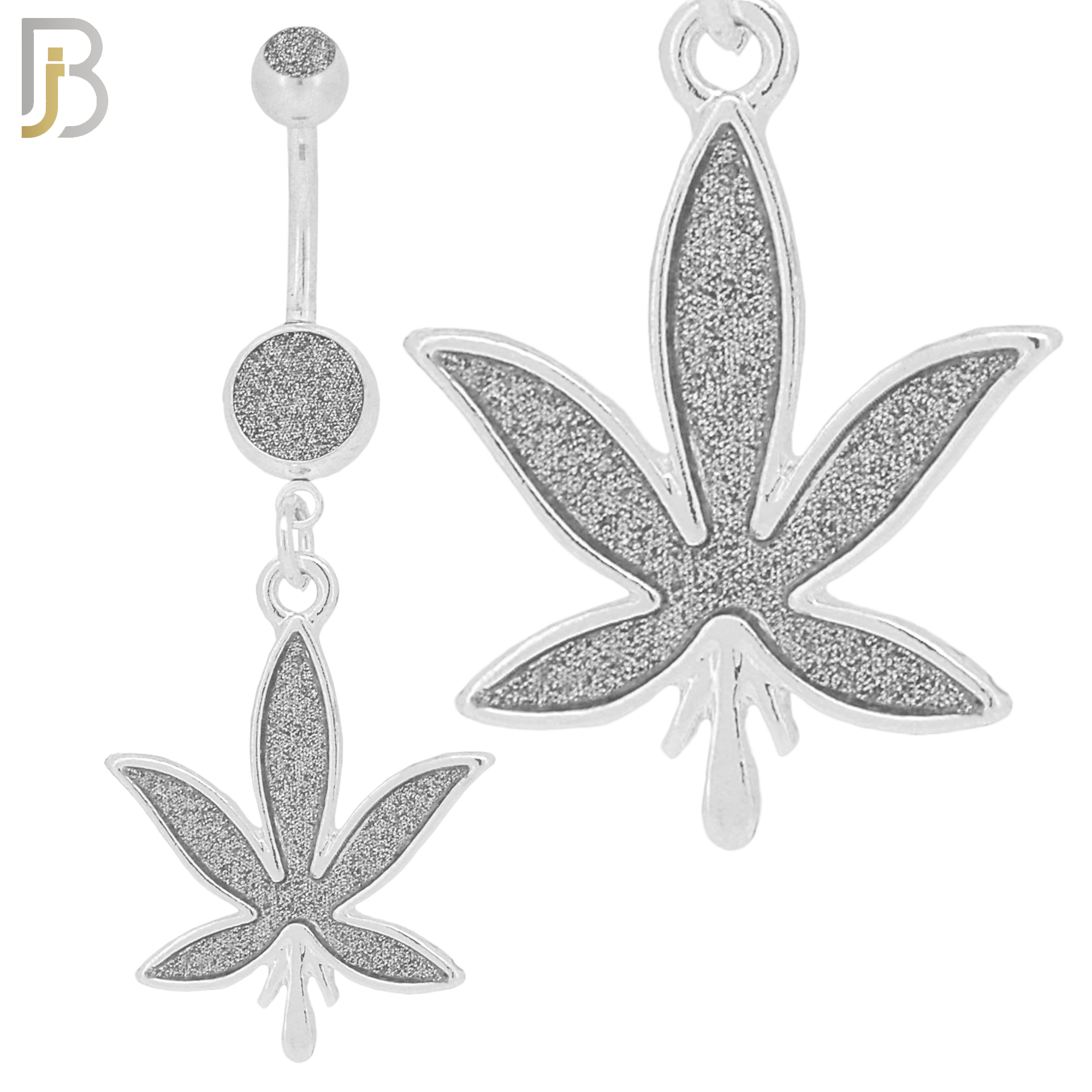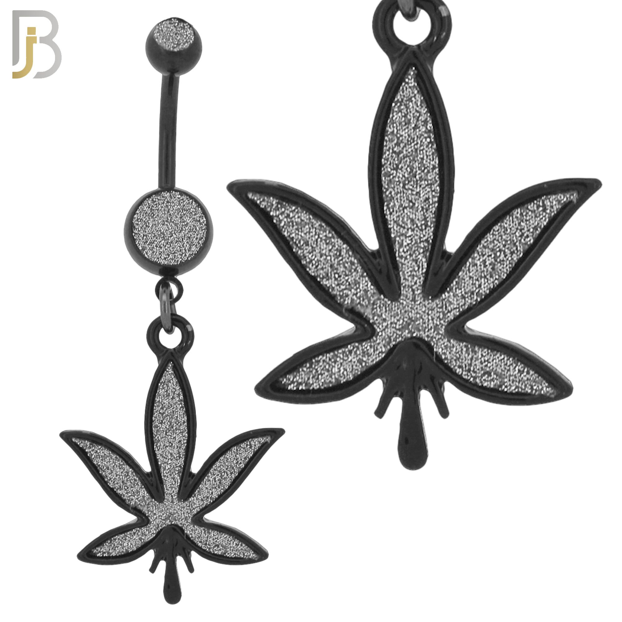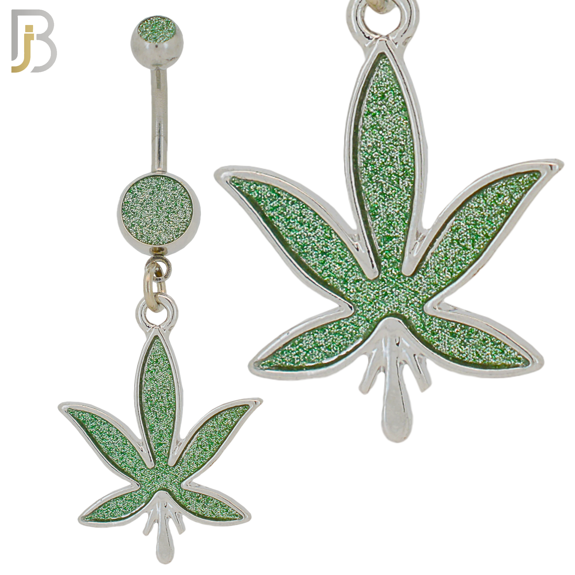 316L Stainless Steel Dangling Marijuana Leaf Sandpaper Design Belly Ring with 4mm Screw Ball