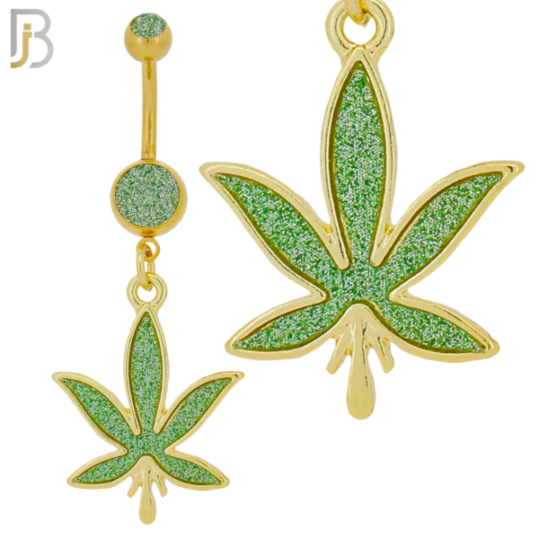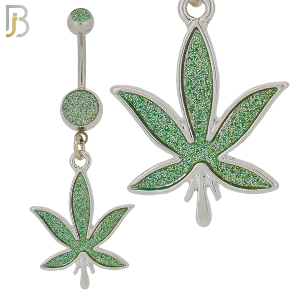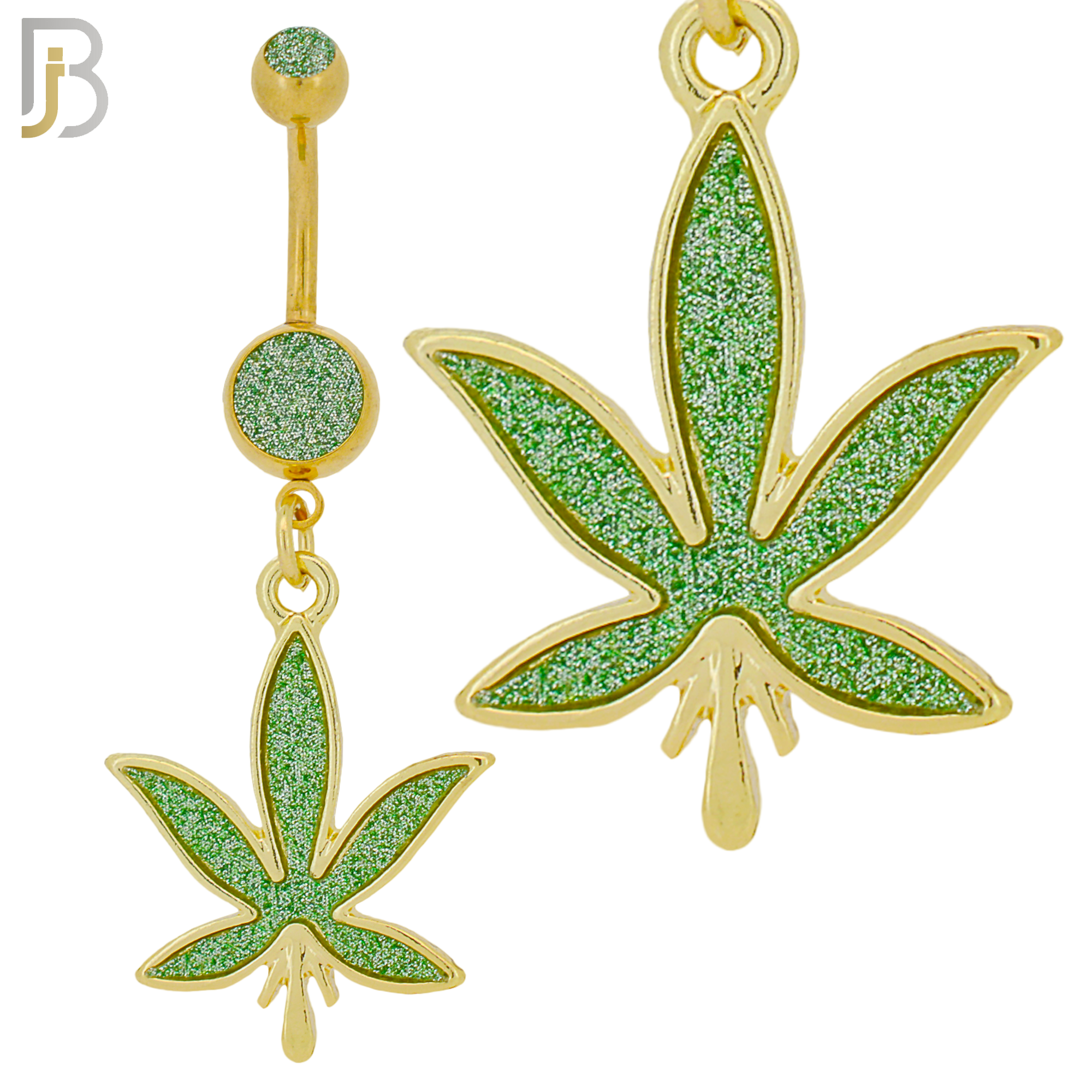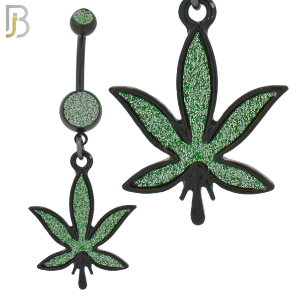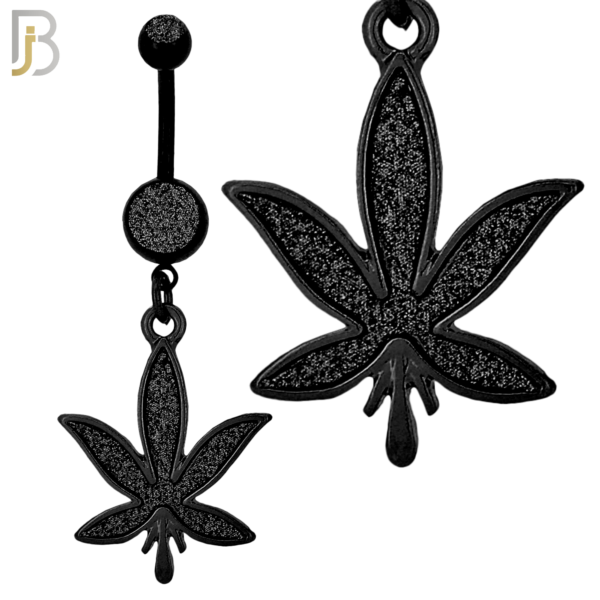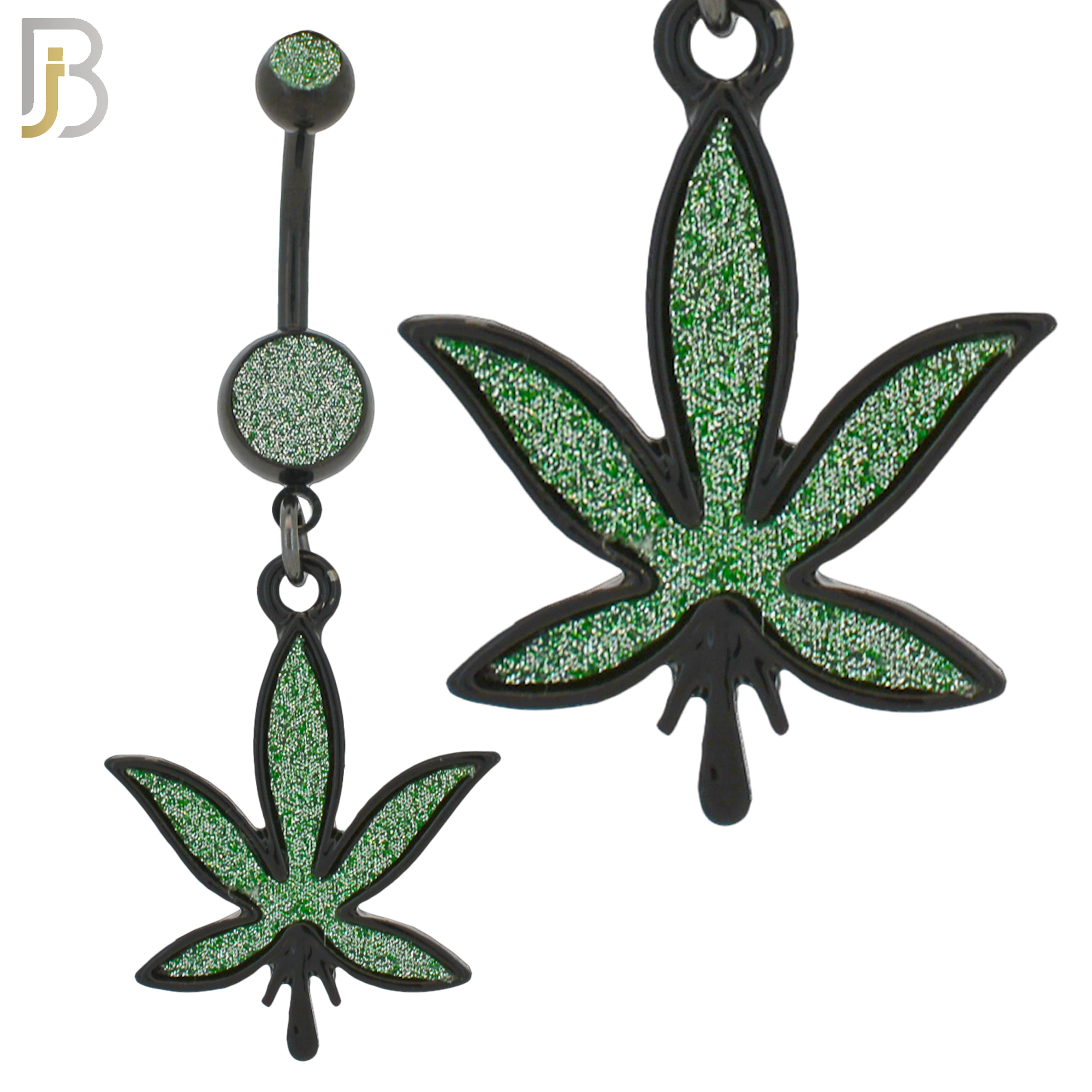 316L Stainless Steel Dangling Marijuana Leaf Sandpaper Design Belly Ring with 4mm Screw Ball